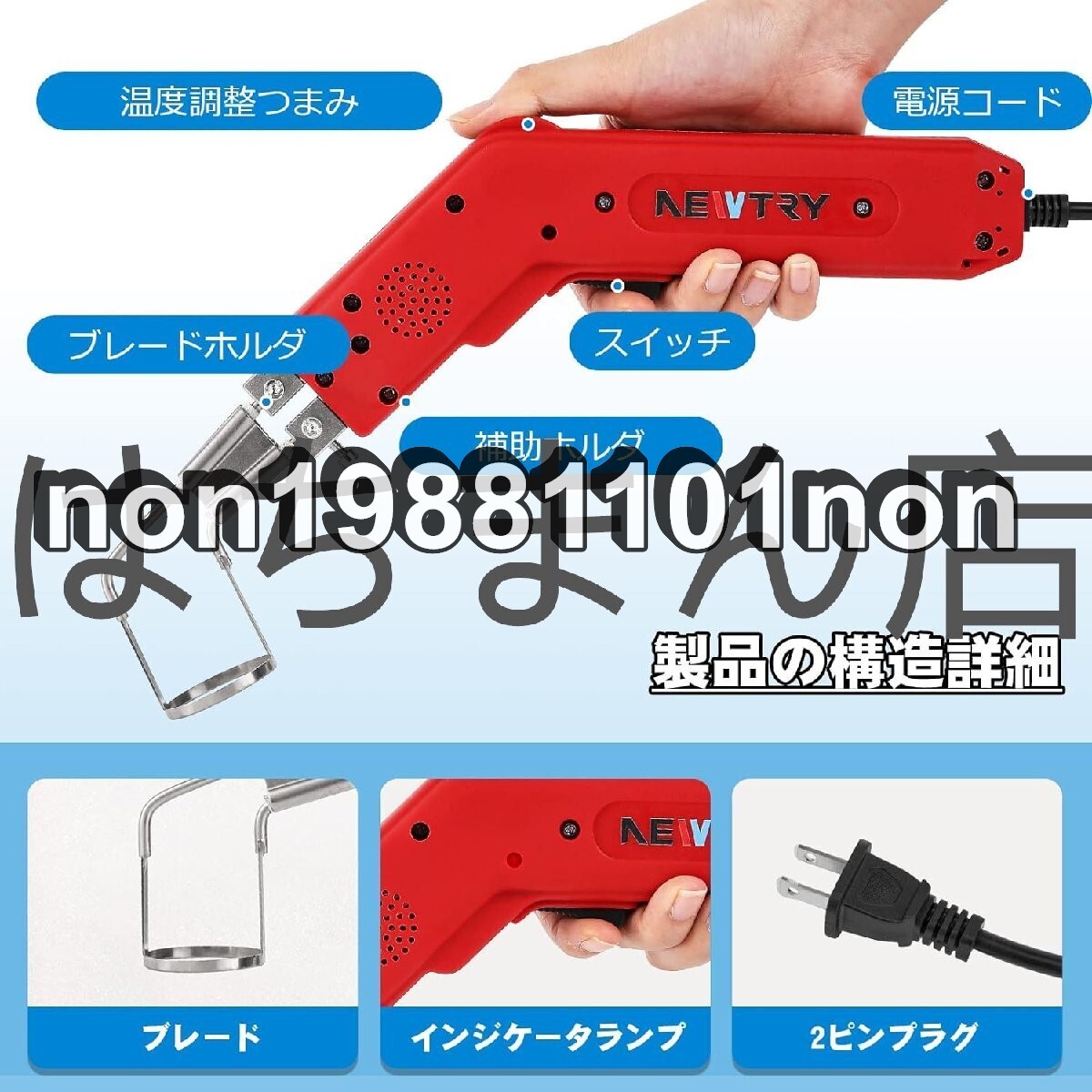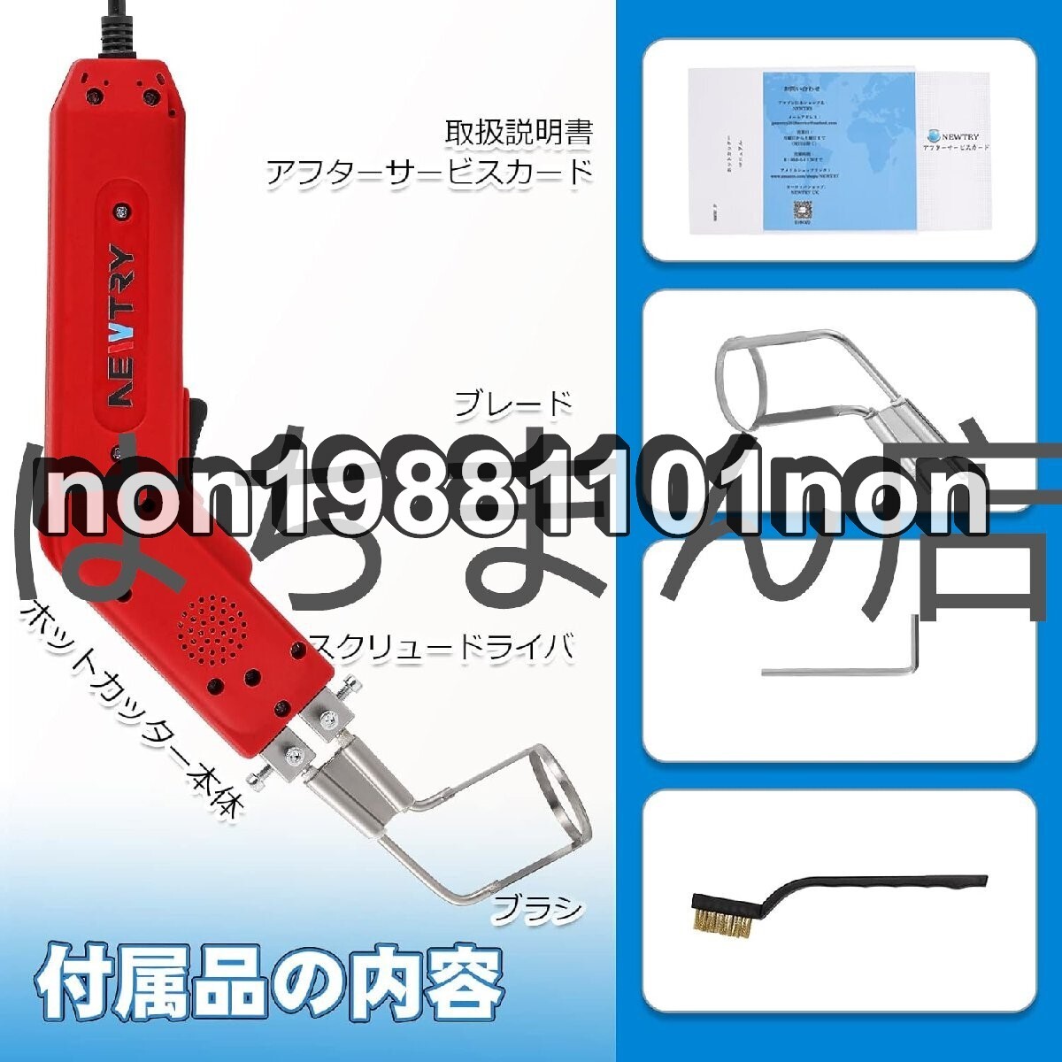 ●商品未使用 状態:新品未使用 【用途】ホットカッターは、低密度発泡材料や化学繊維布地などの低融点材料の切断に主に使用されています。 【切断特徴】:切断後破面は滑らかで、ほつれなし、バリなし。 【適用】:ウレタン(EP)、発泡ポリエチレン(EPE)、スポンジ(PU)、断熱板(XPS)、KT板、不織布、壁紙、化学繊維布、ナイロンロープなど。 ★仕様: モデル:HS-W1 パワー:150W ブレード:丸いブレード ブレードの直径:50mm 温度調整可能:50℃-500℃ 電圧:110V/60Hz 重量:0.8kg ★また、 用途:壁布、布地などの切断/ケーブルなどの切断/グルーなどの切断とクリーニング/プラスチックなどの切断 ●海外輸入品です。