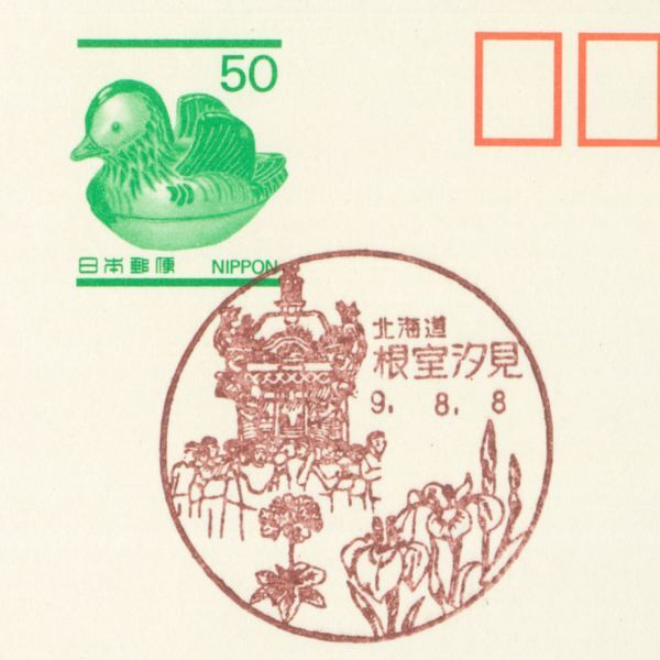 風景印☆初日☆北海道・根室汐見・H9.8.8・旧印