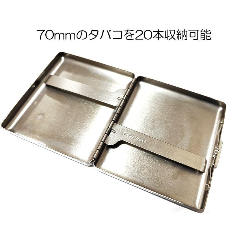 収納本数 | -スリムフィルター(直径6mm)で巻いた長さが70mmの手巻きタバコが20本入ります。 -直径6mmx長さ70mmのリトルシガーにもお使いいただけます。 -スリム巻き専用ケースのため直径8ミリの紙巻きたばこにはご使用いただけません。 |