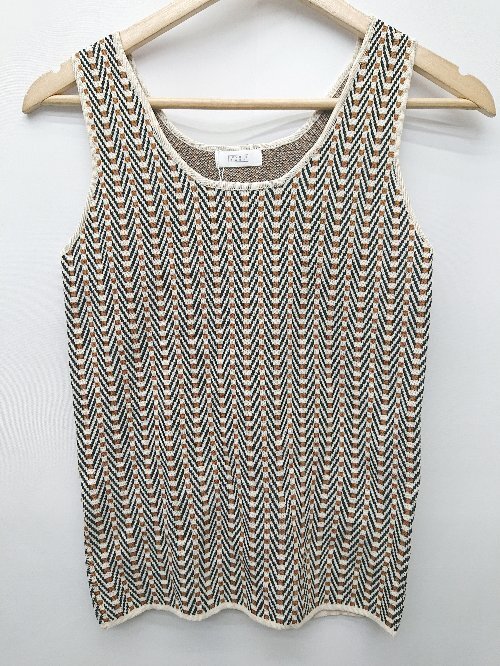 ◇ ⊂ ◎ ●未使用● LOWRYS FARM タグ付き ノースリーブ タンクトップ サイズF ホワイト ブラウン レディース P