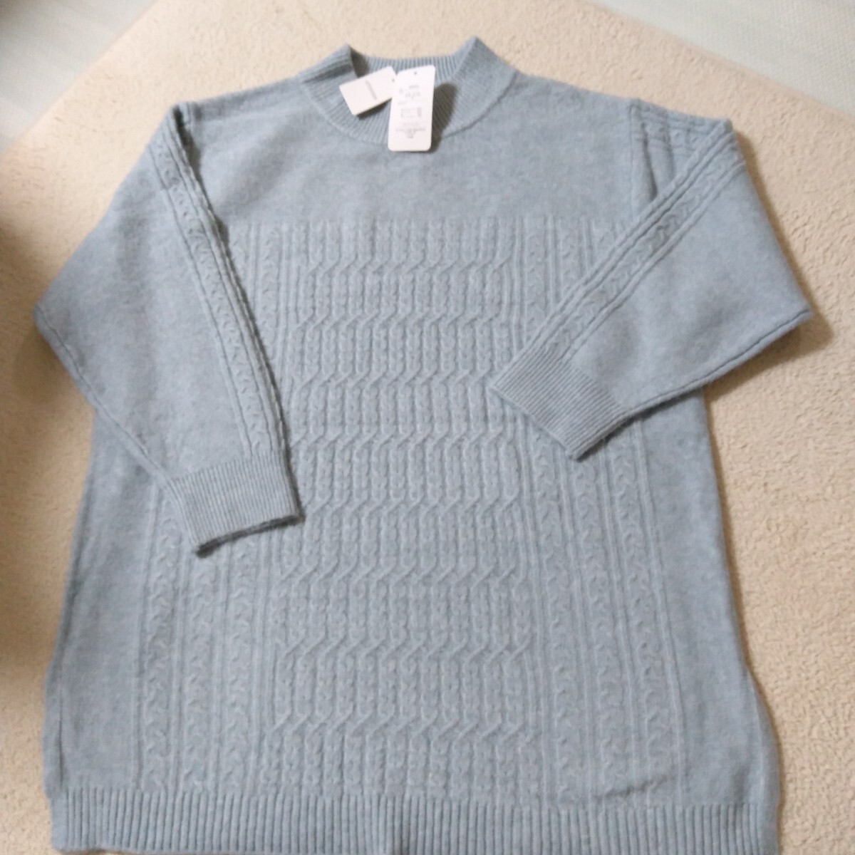 色は水色、サイズM、着丈77cm、横幅55cm。