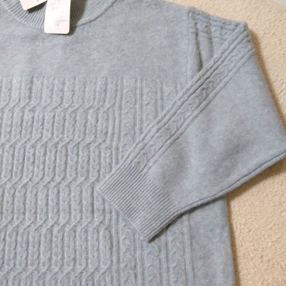 色は水色、サイズM、着丈77cm、横幅55cm。