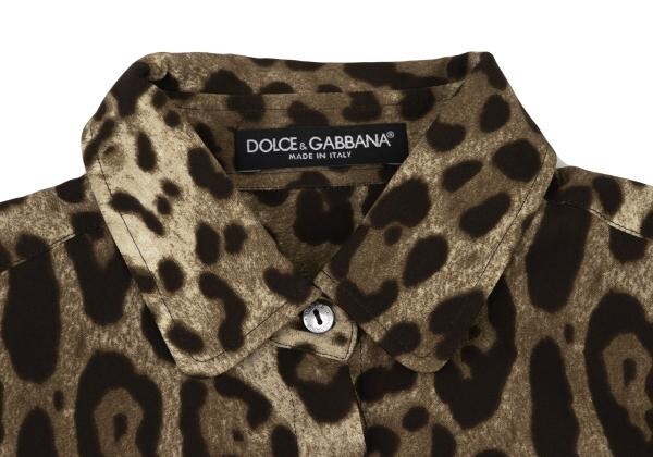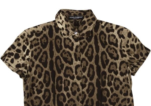 ドルチェ&ガッバーナDOLCE & GABBANA ドルチェ&ガッバーナDOLCE&GABBANA フロントロングレオパードシルクシャツ 茶ベージュ38 |