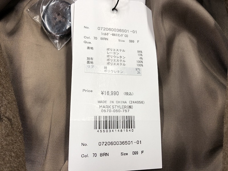 【GYDA】ロングコート ショルダーMA1 ブラウン系 072060036501-01