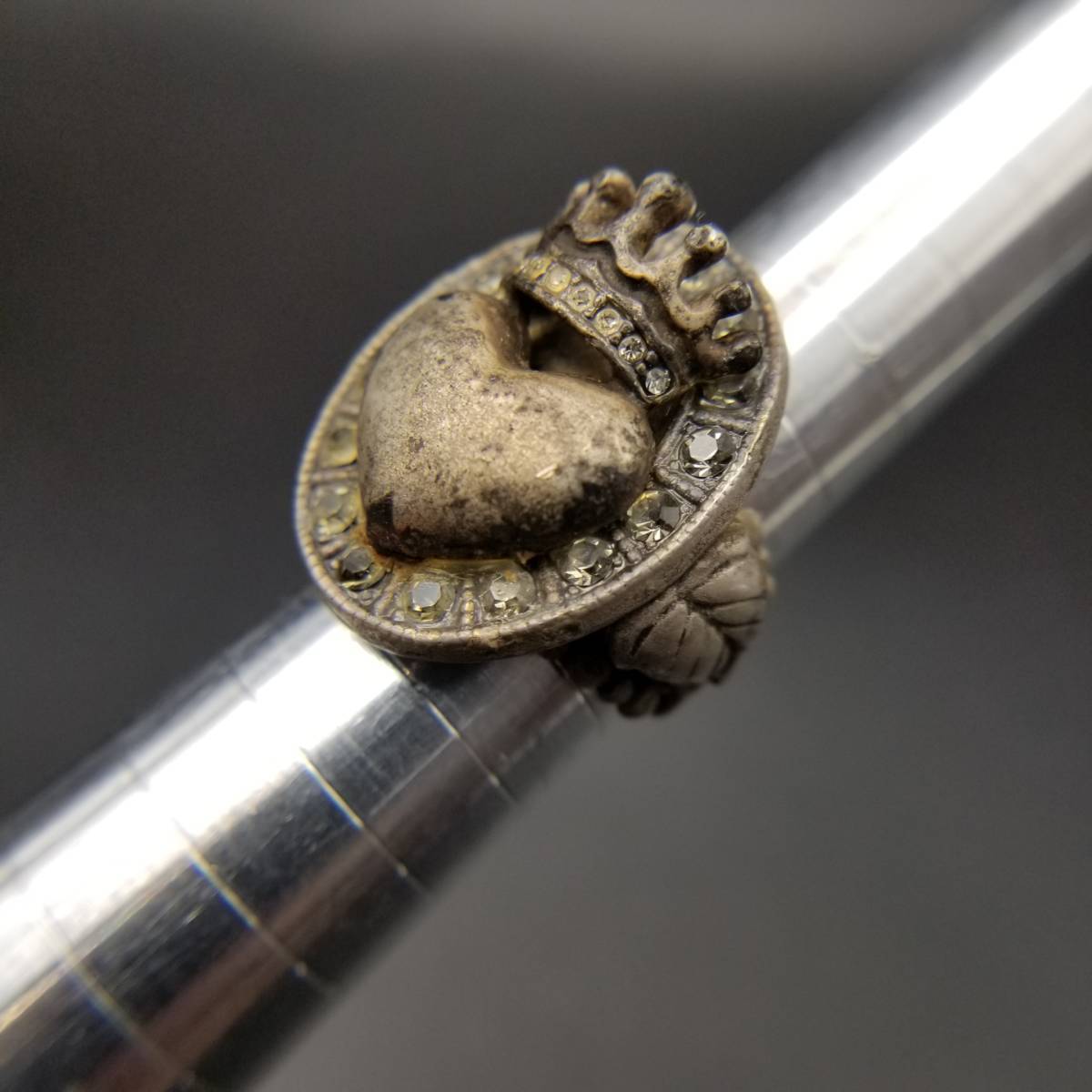 Sweet Romance社製 Made In USA 王冠ハート 立体彫刻 オーバル ヴィンテージ リング 指輪 レトロ ファッションジュエリー Y11-F