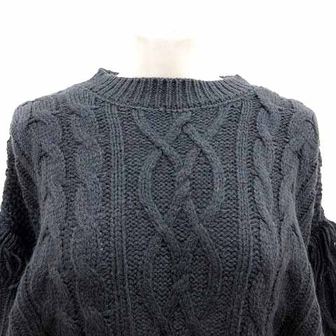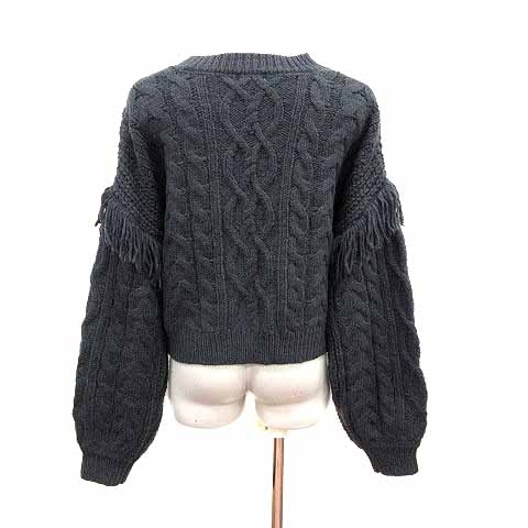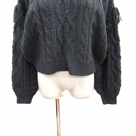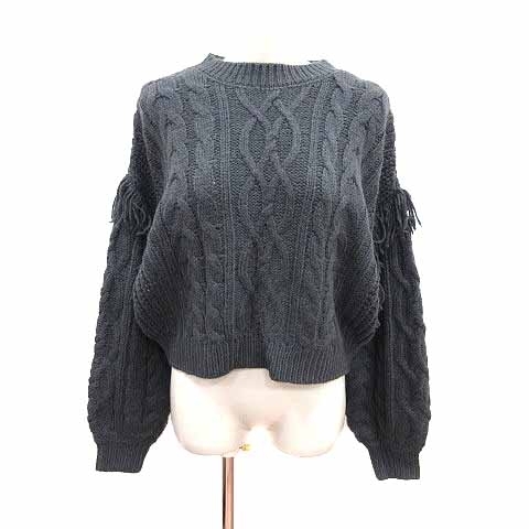 ローリーズファーム LOWRYS FARM ニット セーター ケーブル フリンジ 長袖 F チャコールグレー /YK レディース
