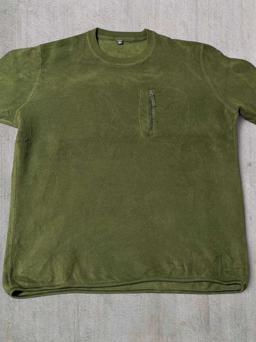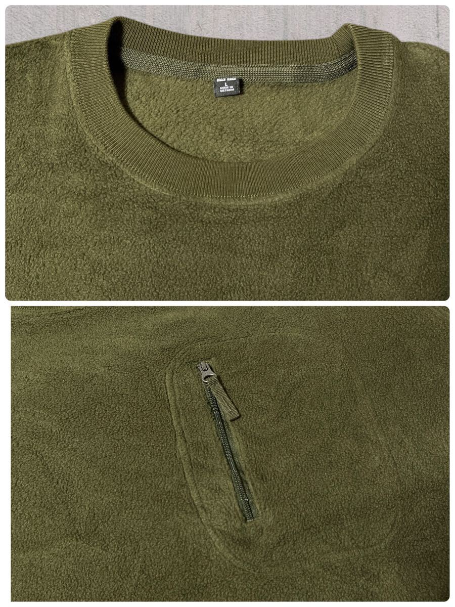 UNIQLO ユニクロ ボアフリース トレーナー オリーブ メンズL●洗濯プレス済● スウェット 無地 アウトドア カーキ グリーン 古着/103