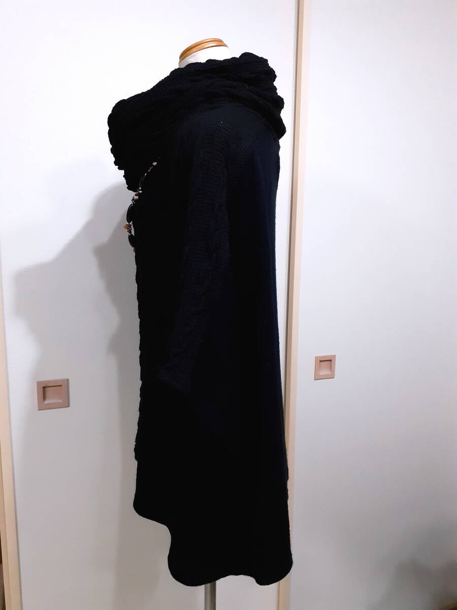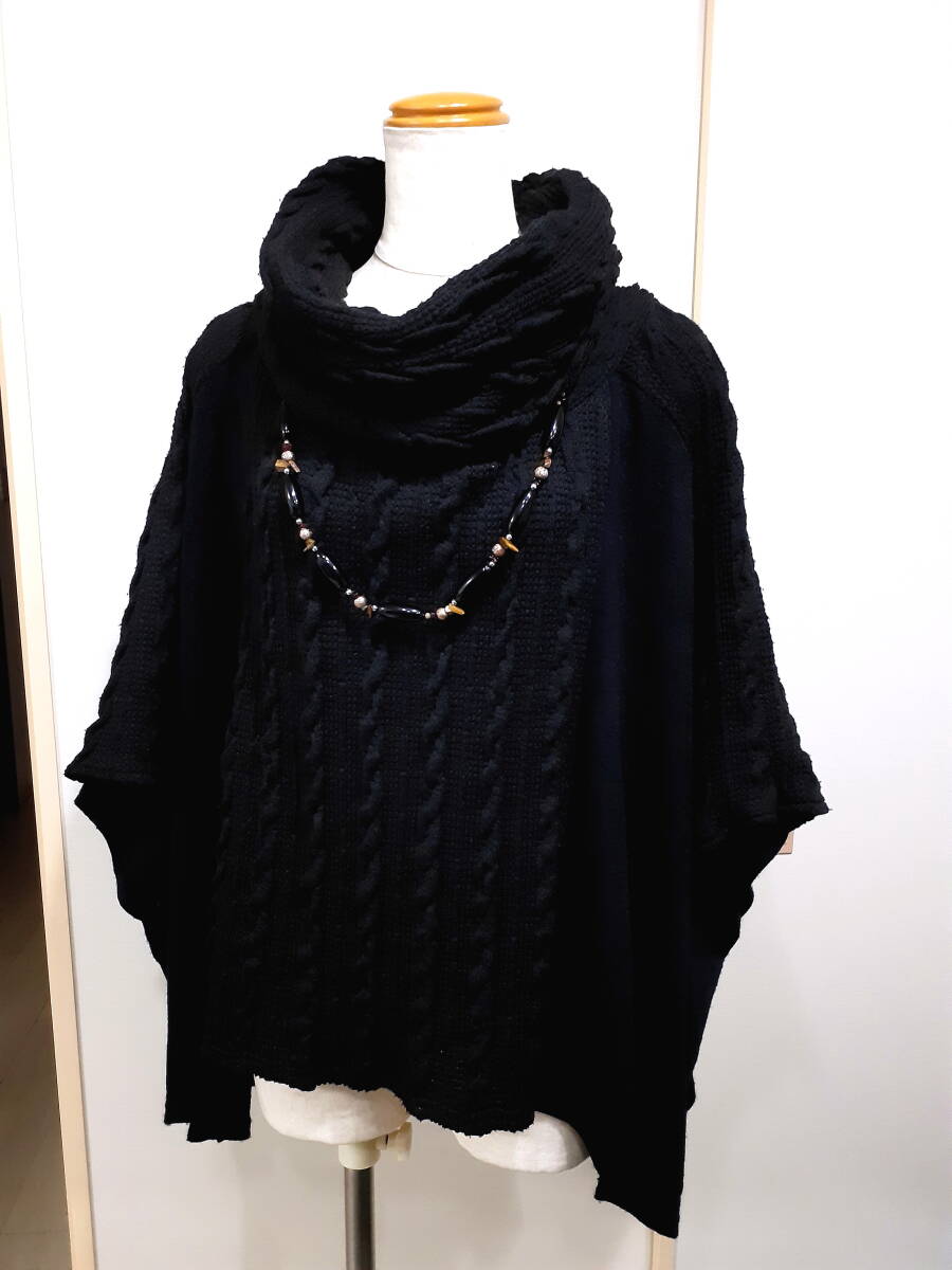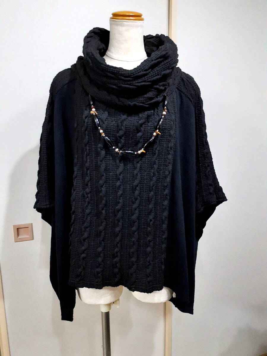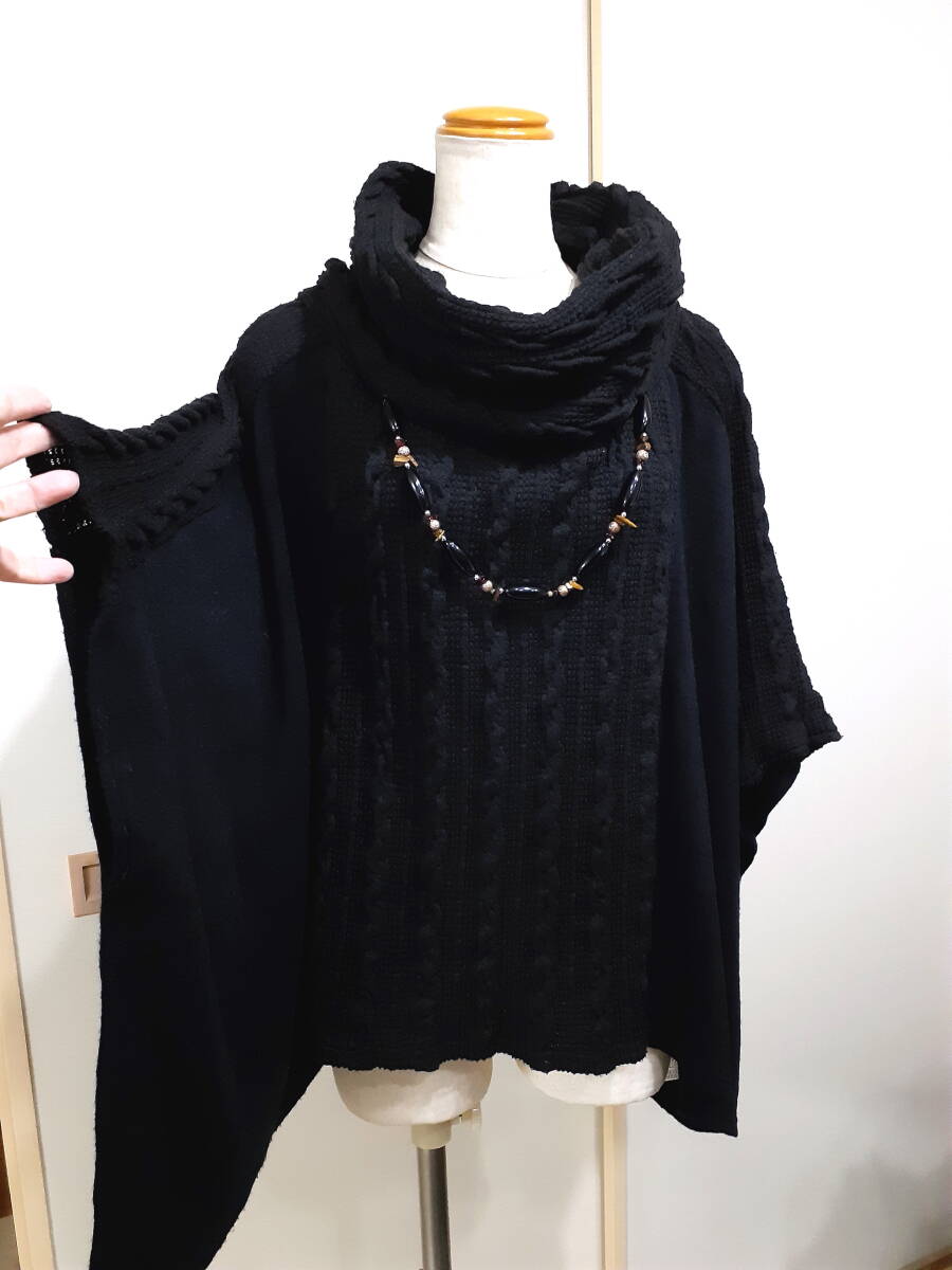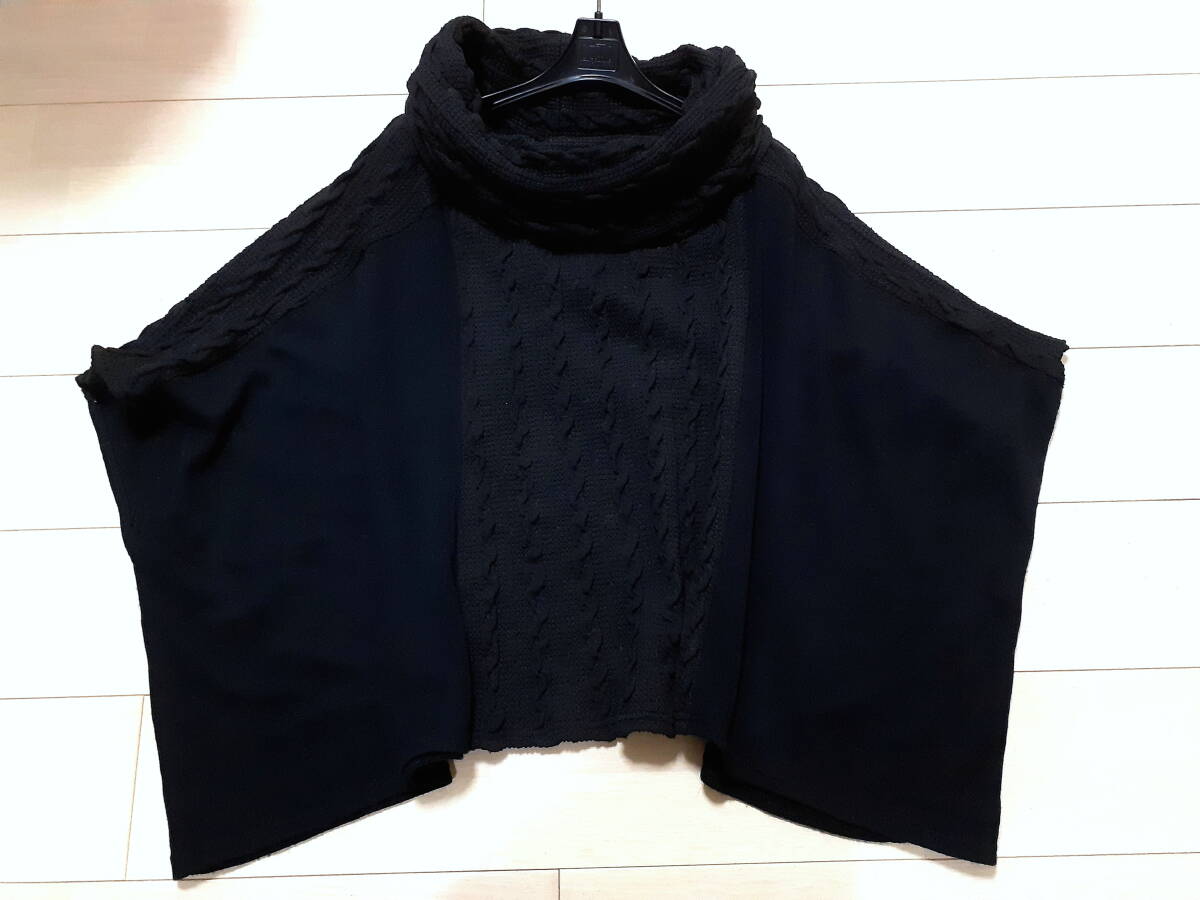 【美品】GIRTY by Roomy's ギルティ バイ ルーミーズ*オフタートル ニット ポンチョ セーター*黒ブラック*Fサイズ*ドルマン/モモンガ