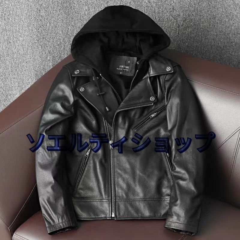 人気新品★メンズ 革ジャン 最上級 牛革 レザージャケット ライダース バイクウエア オートバイブルゾン 本革 フード取外し可能 S-5XL