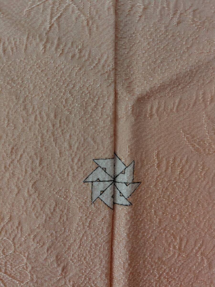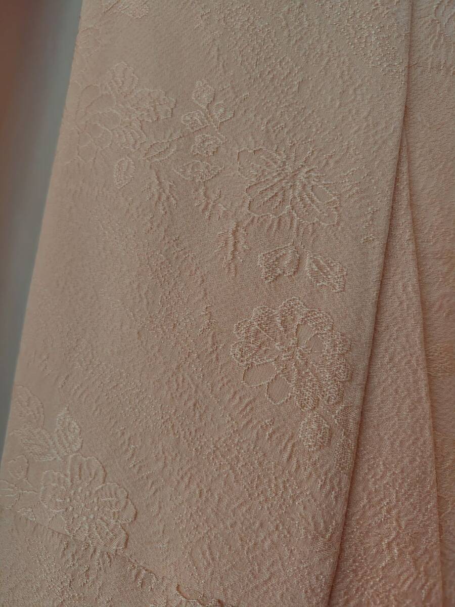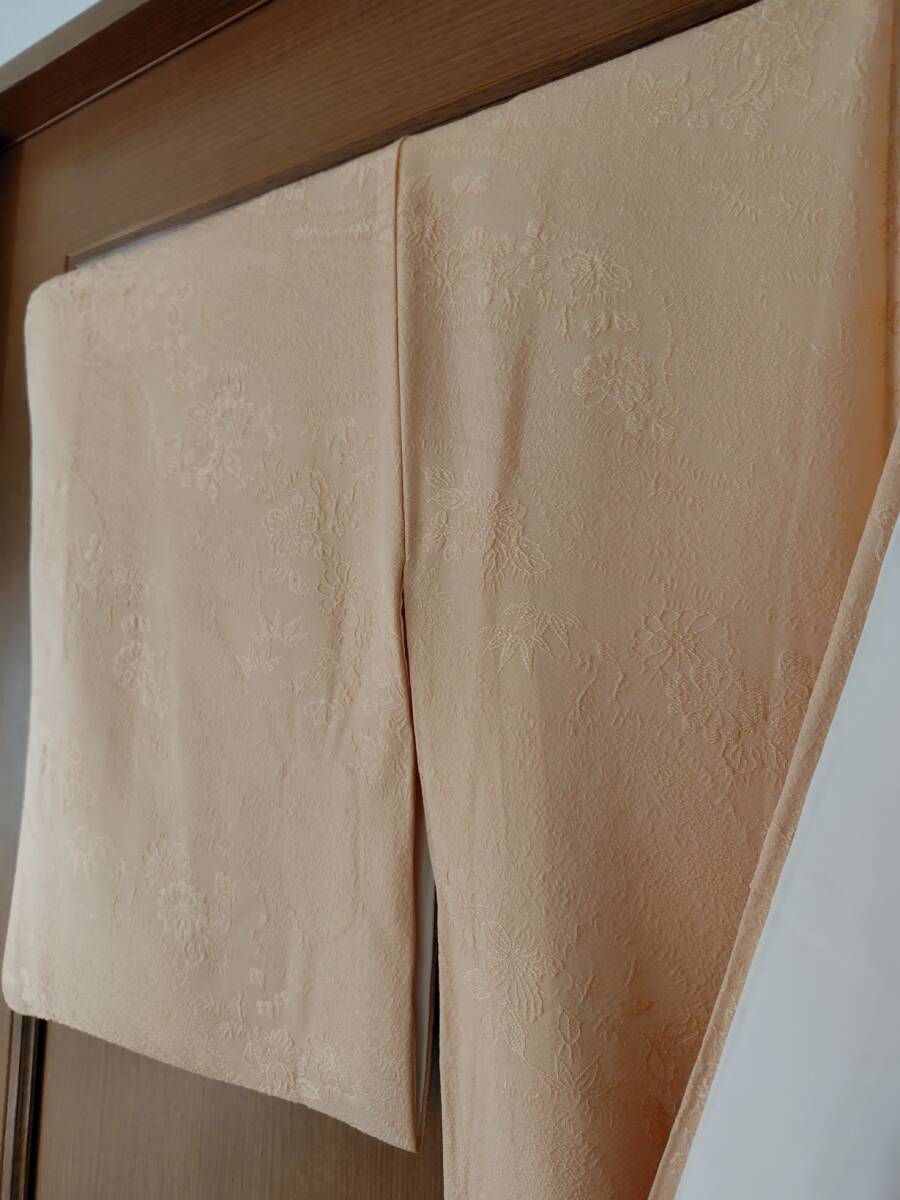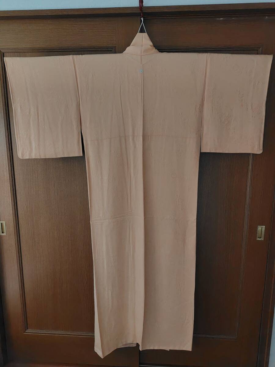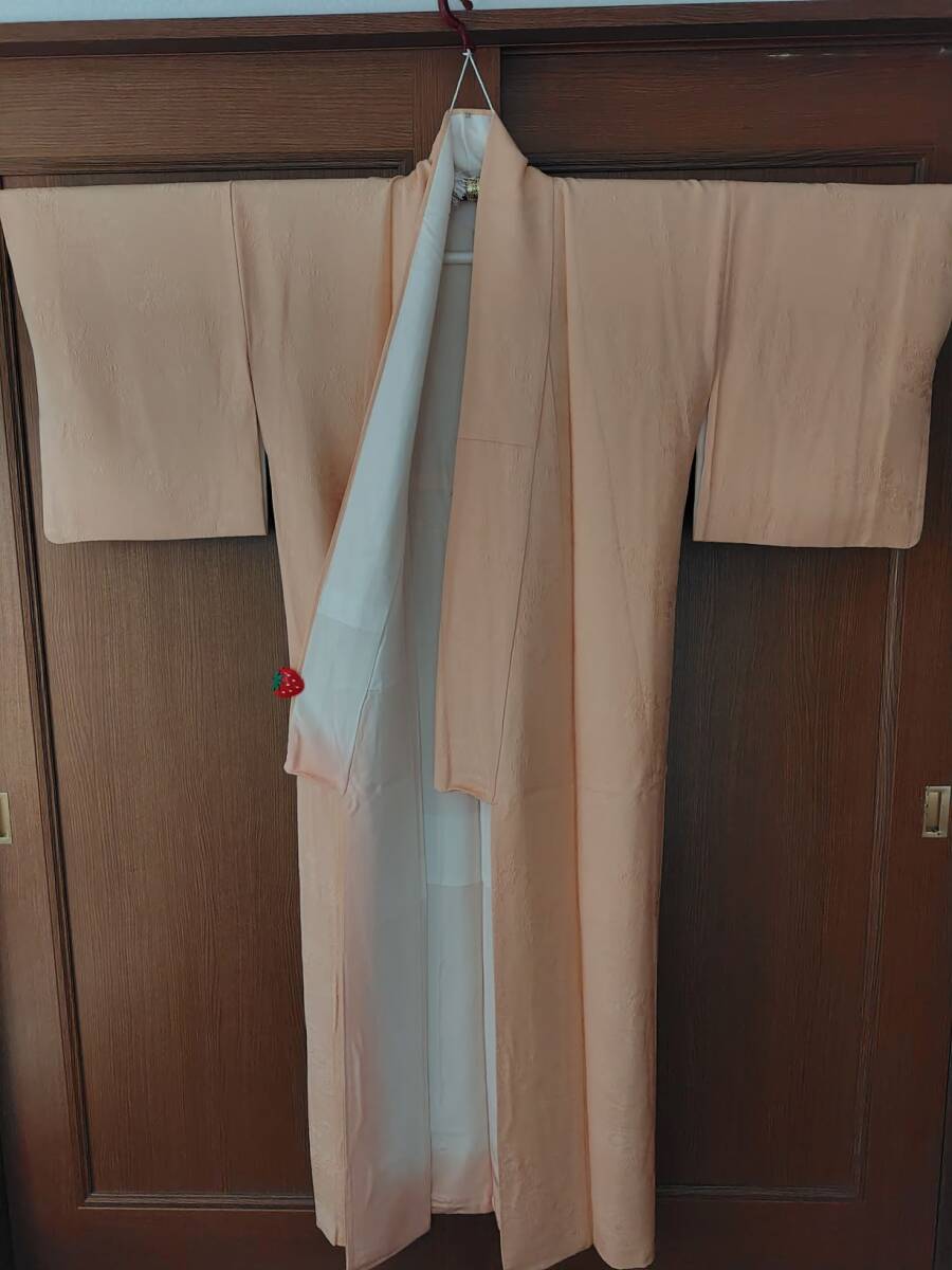 ★未使用★色無地★薄オレンジ★薄朱色★着物★一つ紋