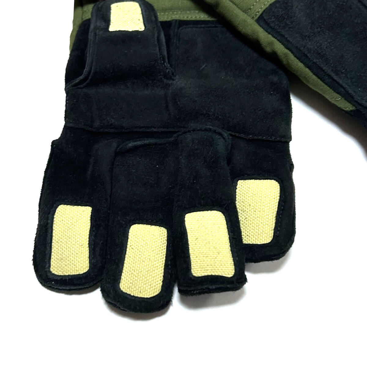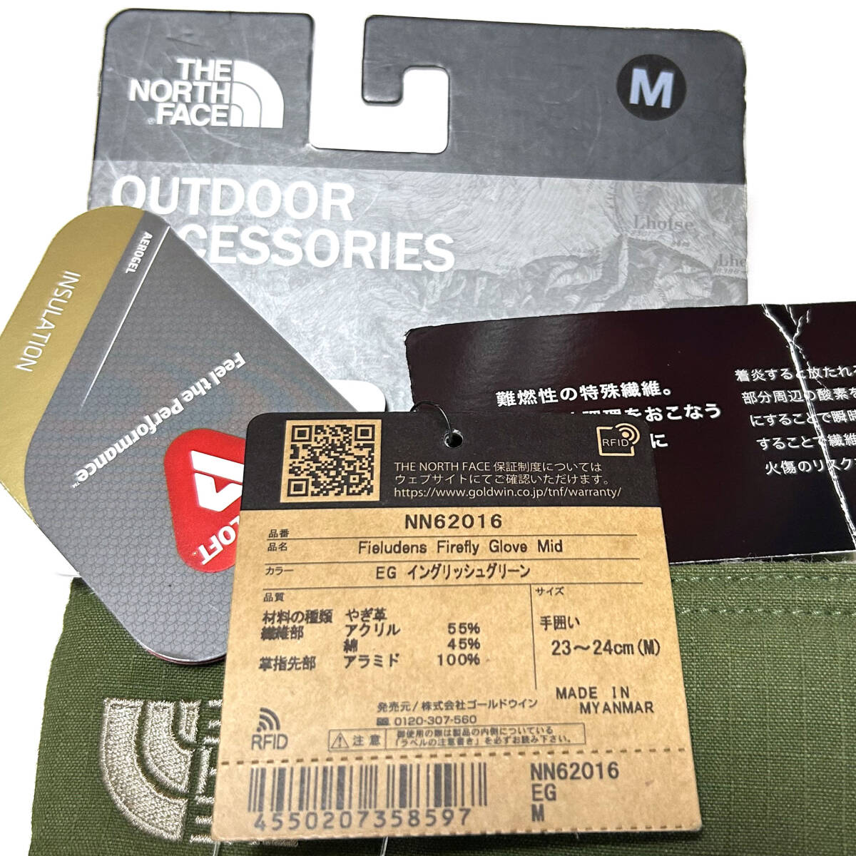 商品説明 | ブランド The North Face(ザ・ノースフェイス) 品名 Fieludens Firefly GLOVE MID フィルデンス ファイヤーフライ グローブ ミッド 品番 NN62016 カラー イングリッシュグリーン サイズ Mサイズ 手囲い23‐24cm 素材 皮革部:やぎ革55% 繊維部:アクリル55% コットン45% 掌指先部:アラミド100% 定価 15,400円 しなやかで耐久性が高いレザーと難燃素材を組み合わせた、アウトドアで活躍するハイブリッド キャンプグローブ。 指先部に、熱伝導率が低いエアロゲルと難燃素材を組み合わせた4レイヤー構造を採用し、焚き火作業やダッチオーブン調理時の保護効果を追求。 甲部分には、着火時に自己消火機能を発揮し、火傷のリスクを低減するファイヤー レジスタント リップストップ生地を使用しています。 冷気の侵入を軽減する長めの丈に、ポリエステルの中わたを封入し、ボアフリースを内側に配した防寒仕様。 吊り下げに便利なループ付きです。 |