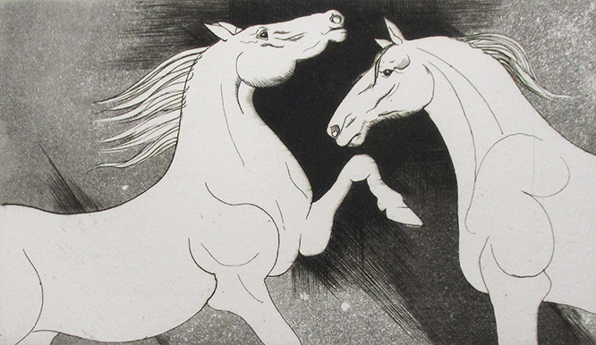 坂本好一『叫ぶ』銅版画 ed.28/100. 鉛筆サイン 額、箱付き 春陽会/日本版画協会/栃木県