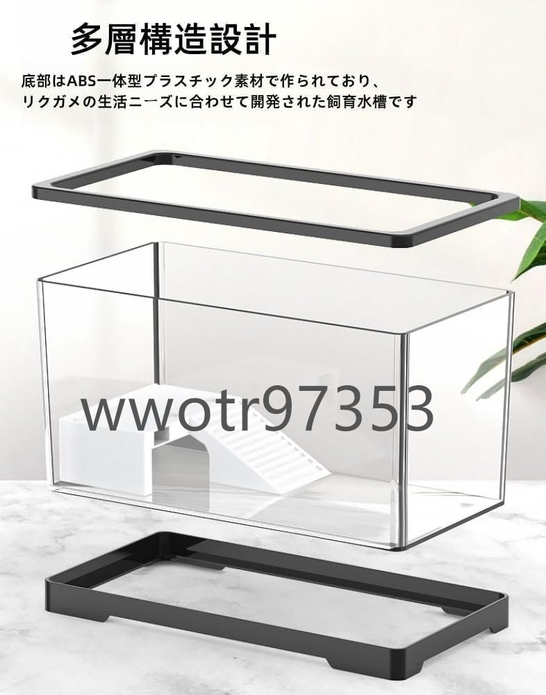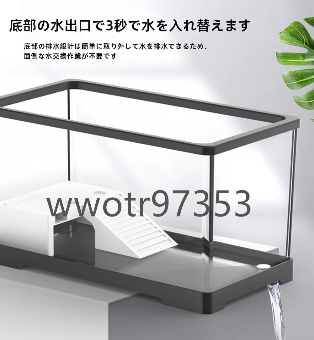 亀の水槽 アクリル水槽 カメ生息地 亀観察飼育用 両生飼育箱 3秒で水替え テラス付き 360度見ている亀水族館生息地