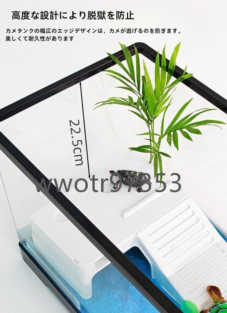 先進の設計で脱走を防止 カメ水槽の縁が広い設計でカメの脱走を防ぎます。美しく耐久性があります。