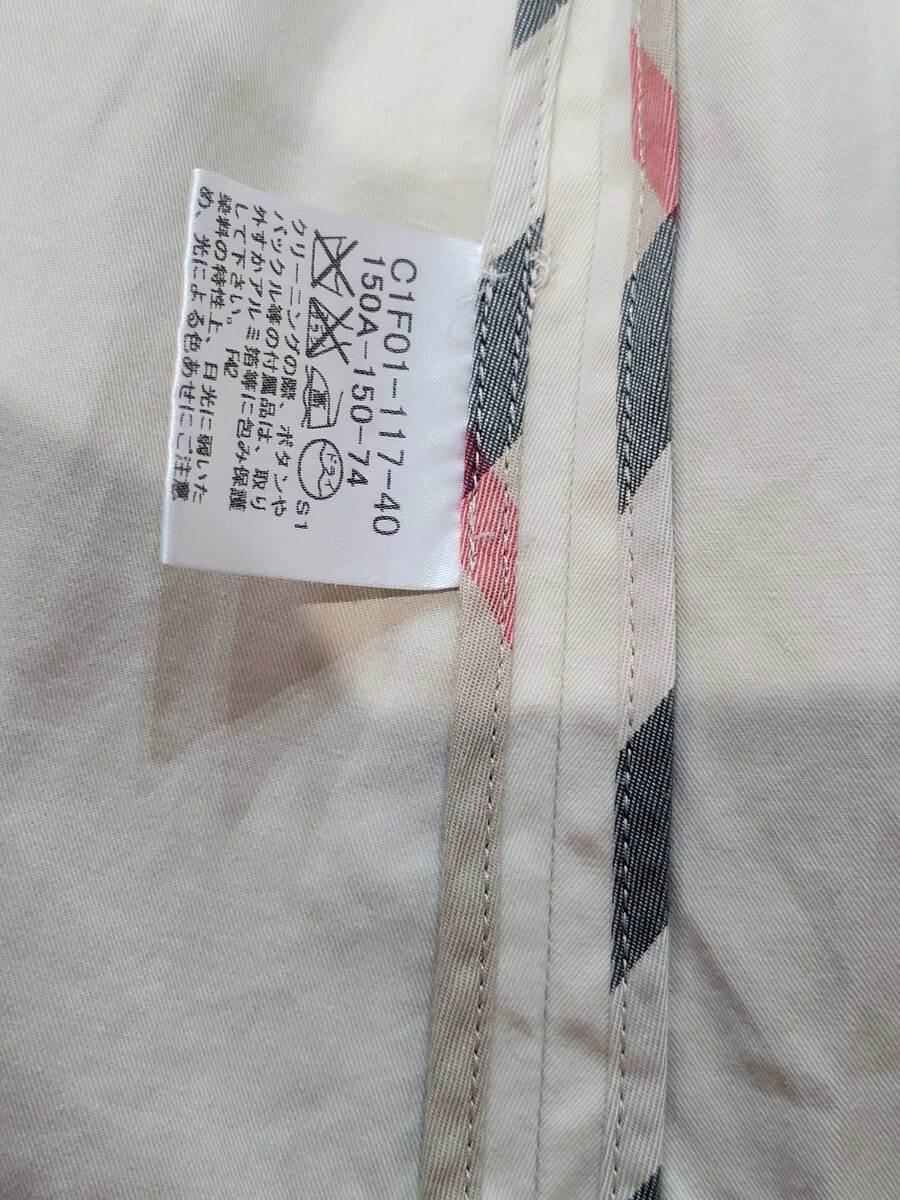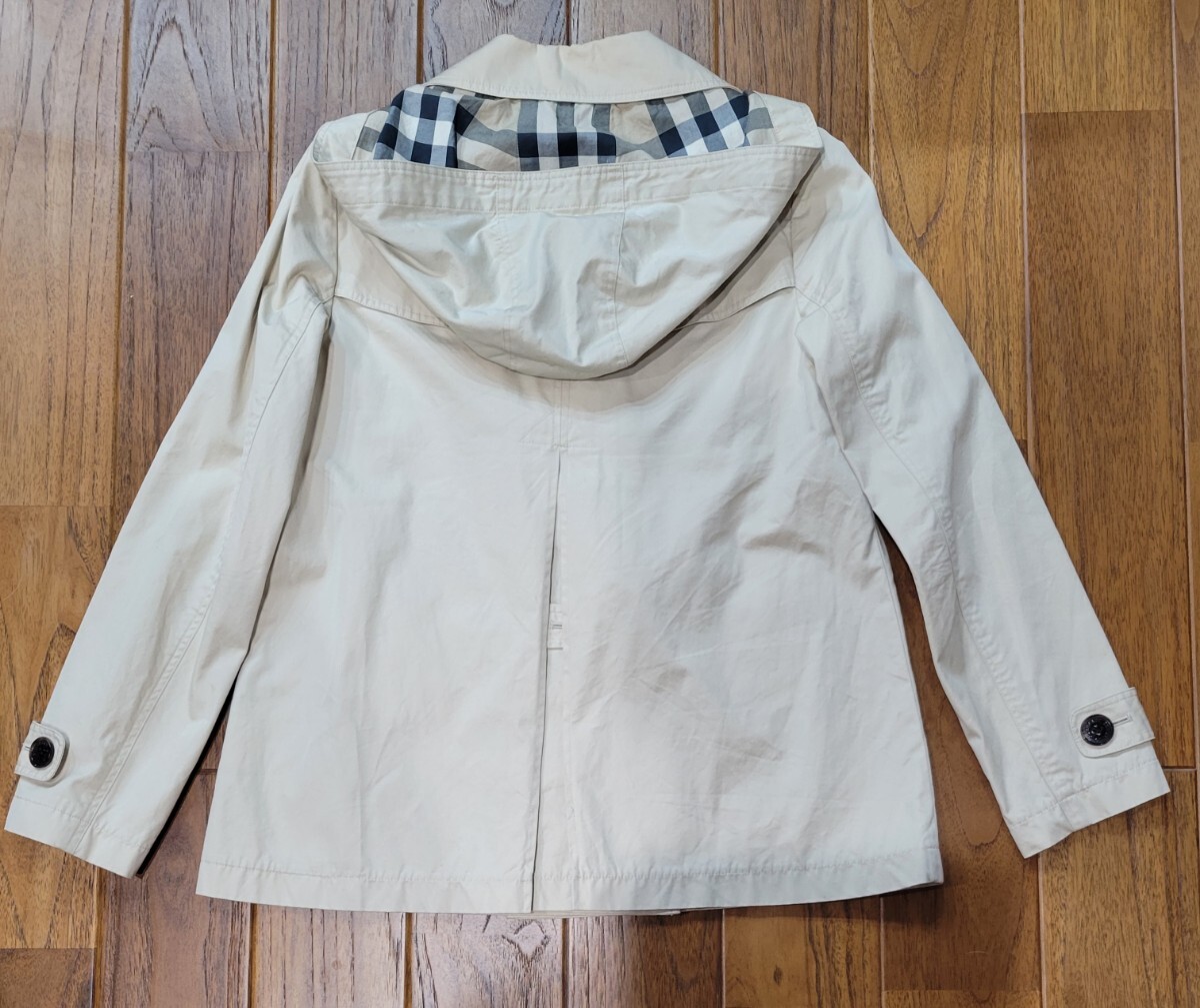 バーバリーロンドン ベージュジャケット 150Aです。フードは取り外せます。状態は良好です。サイズ 着丈61 肩幅36,5 袖丈55 胸幅46cm