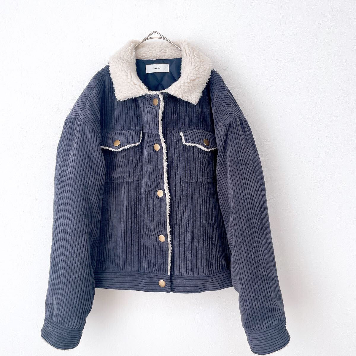 おしゃれAvan Lily アヴァンリリィ ボア コーデュロイ ジャケット ブルゾン キルティング ブルー青グレーMサイズ アヴァンリリー アウター