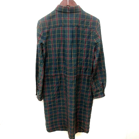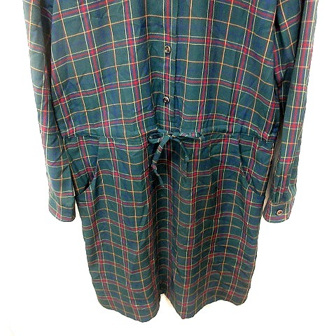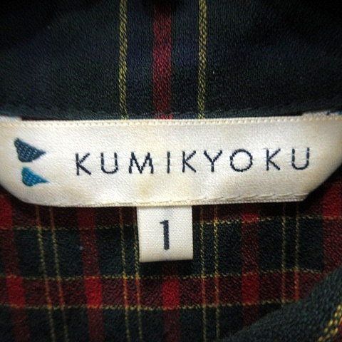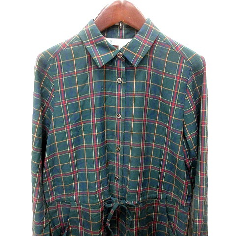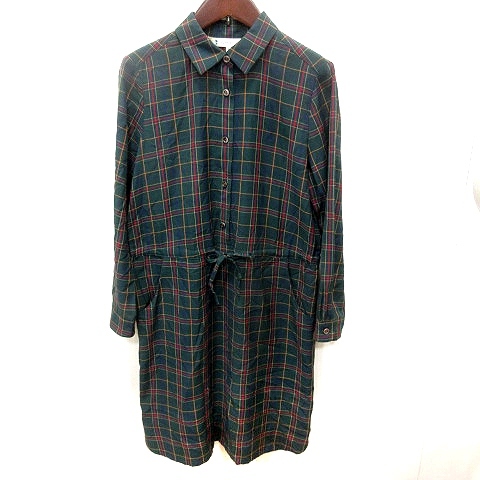 クミキョク 組曲 KUMIKYOKU シャツワンピース タイト ひざ丈 長袖 チェック ウエストマーク 1 緑 グリーン /RT レディース