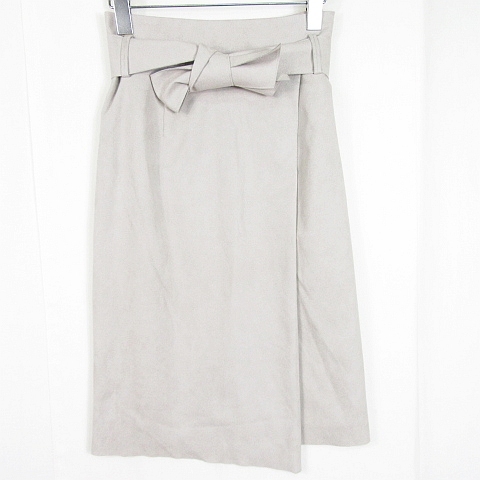 ノーリーズ Nolley's スエード風 タイト スカート ベルト付き 膝下丈 36 ライトグレー kz10091 レディース