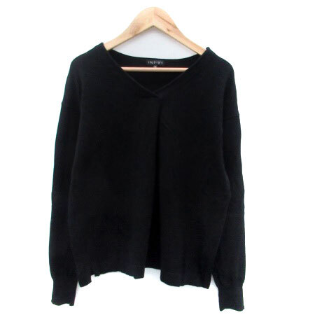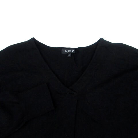 インディヴィ INDIVI ニット カットソー Vネック 長袖 無地 38 M 黒 ブラック /HO36 レディース
