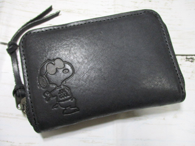 新品 小銭入れ メンズ スヌーピー SNOOPY Peanuts ブランド コインケース ラウンド 財布 本革 牛革 Joe Cool ブラック