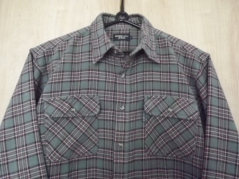MICHIKO LONDN JEANS2ポケット長袖トレッキングシャツ(グレー系チェック)Lサイズ