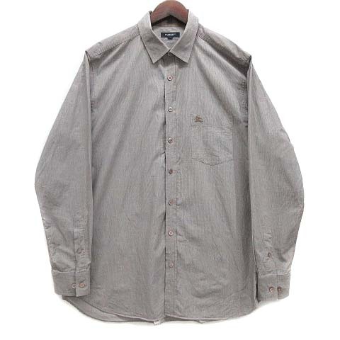 バーバリー ロンドン BURBERRY LONDON ストライプ ドレスシャツ ワイシャツ 長袖 ホースマーク ブラウン 茶 LL A1M44-212-56 メンズ