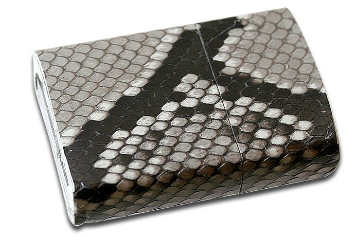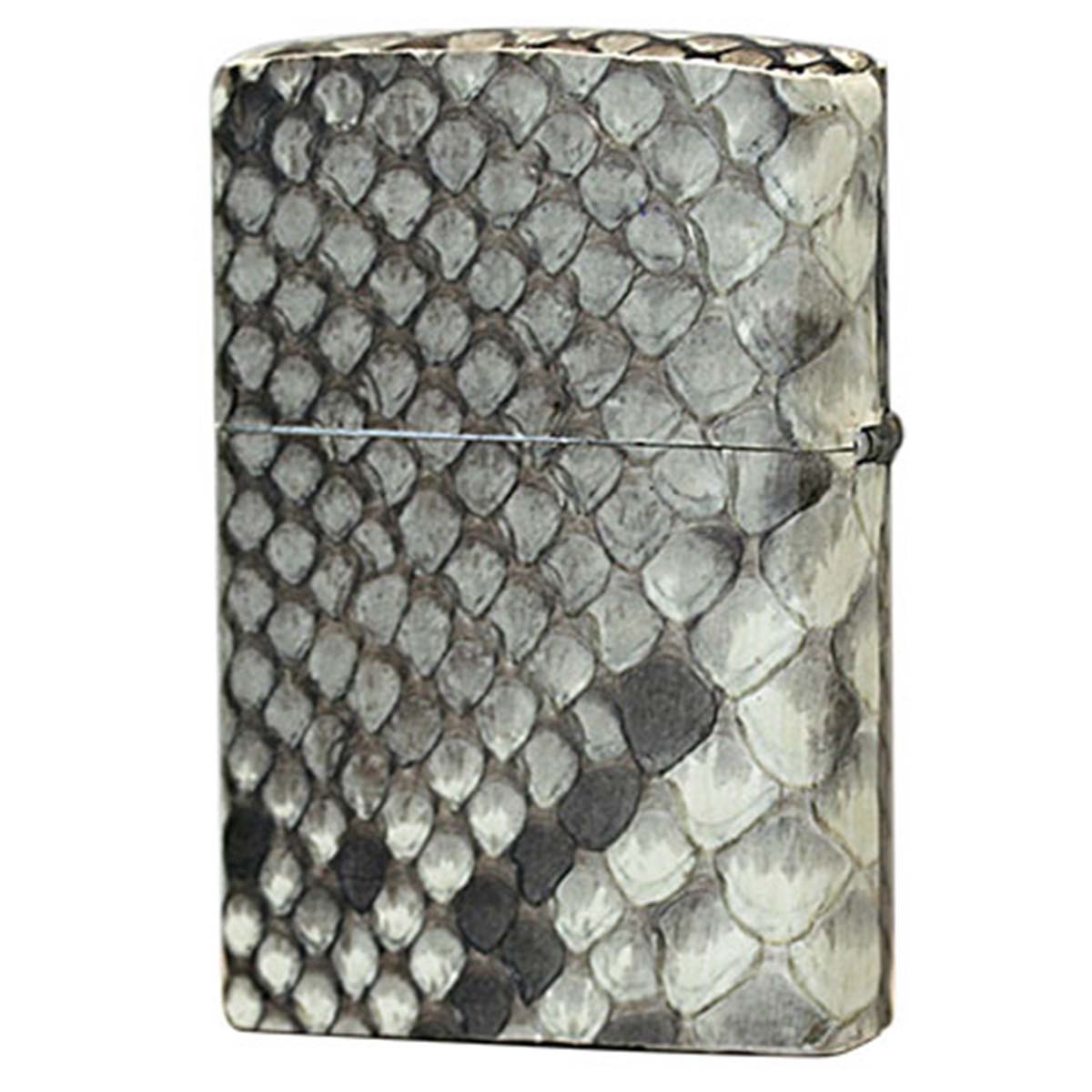 使い込むほどに味が出る革巻きシリーズから、待望の本蛇革ZIPPOが登場。1つ1つを最高峰の日本の革職人が手作りしており、至高の超高級感とワイルドさが全面に押し出されています。アミメニシキヘビという背面に網目状の斑紋が並ぶ蛇革が使用され、自然の素材を活かしたデザインの為、同一製品であっても個体差で見た目が異なります。