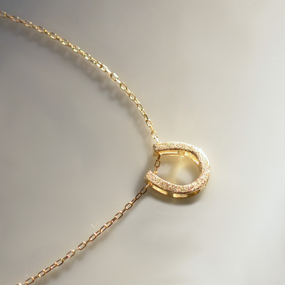 ラッキーアイテムの馬蹄ネックレス。