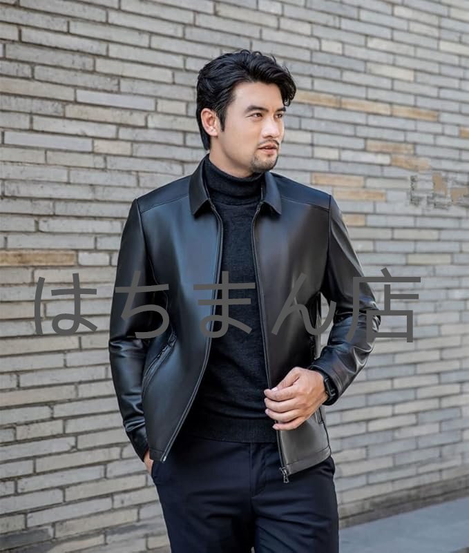 シングルライダースジャケット メンズ レザージャケット 革ジャケット 本皮 ラムレザー 防寒 襟付き 秋冬 ブラック L-5XL