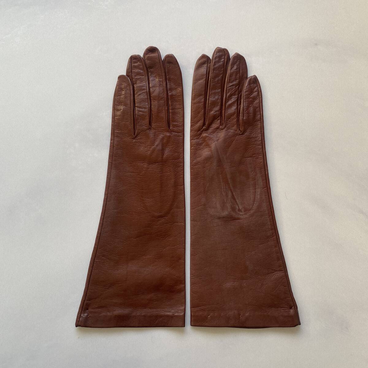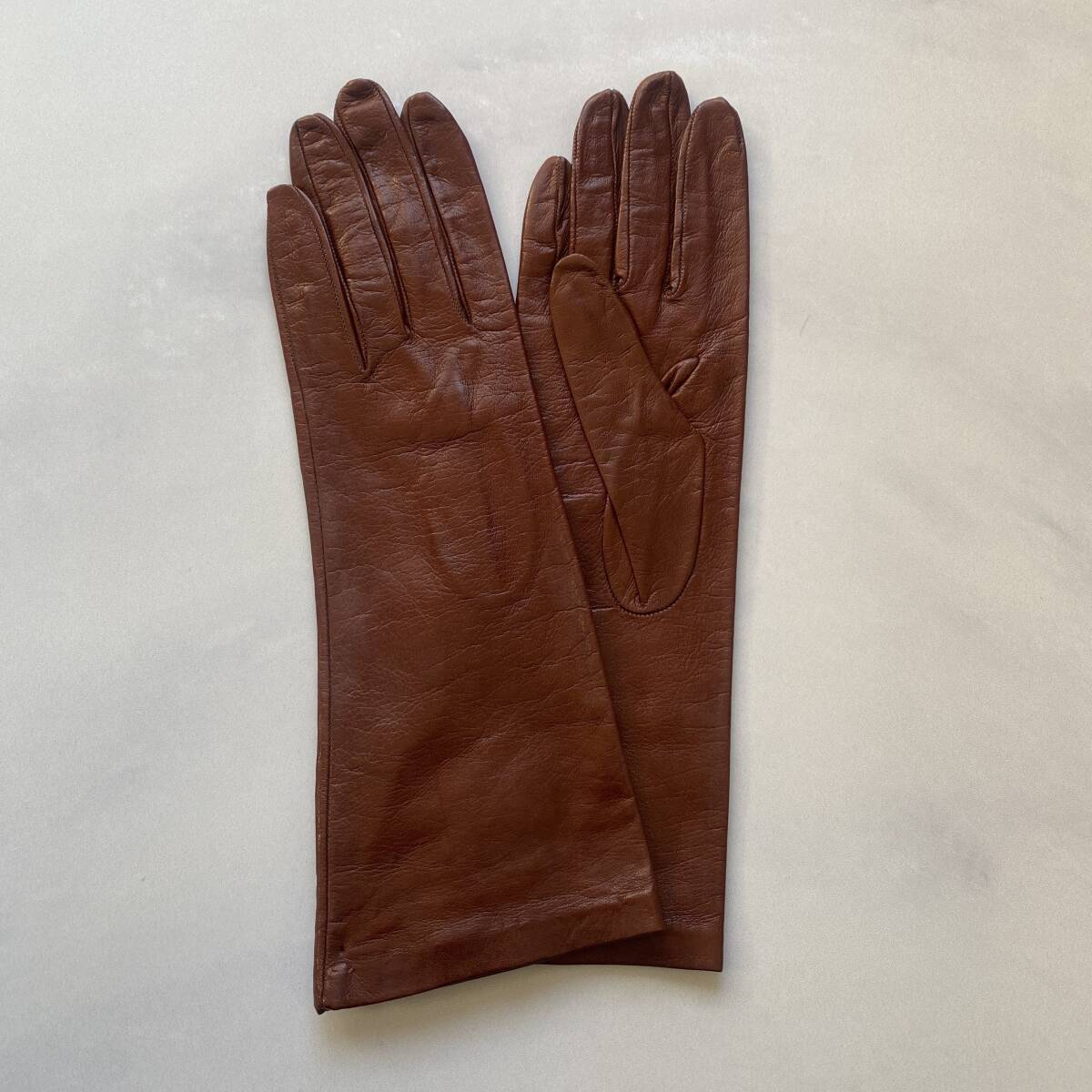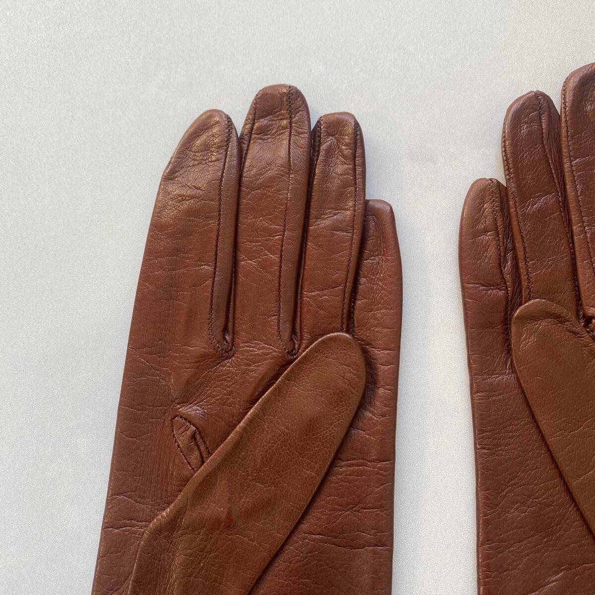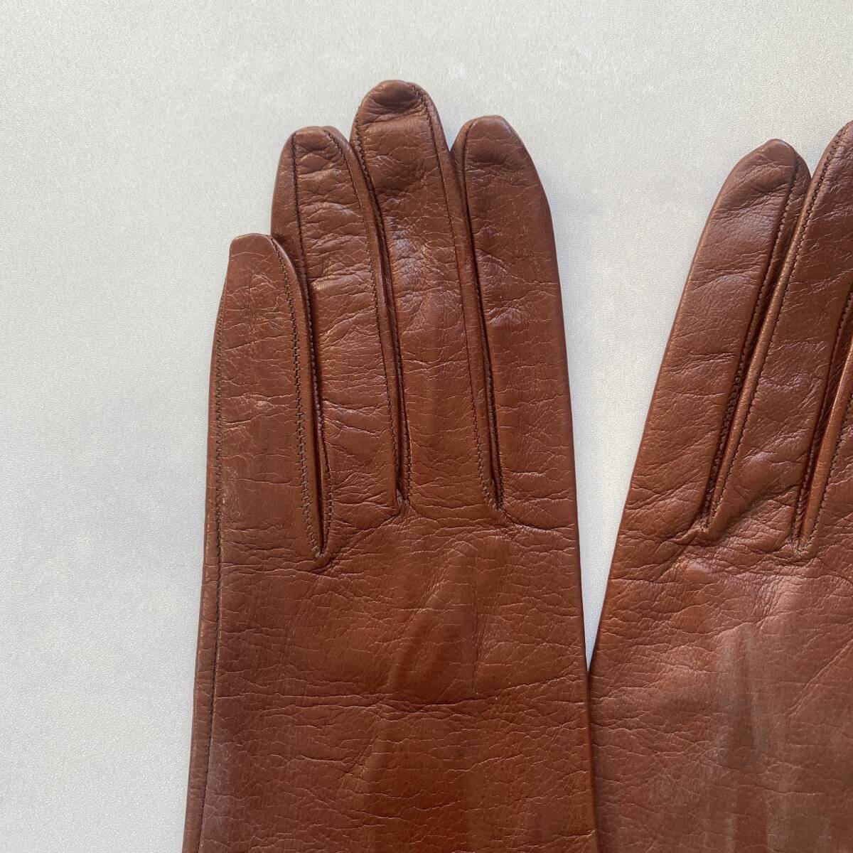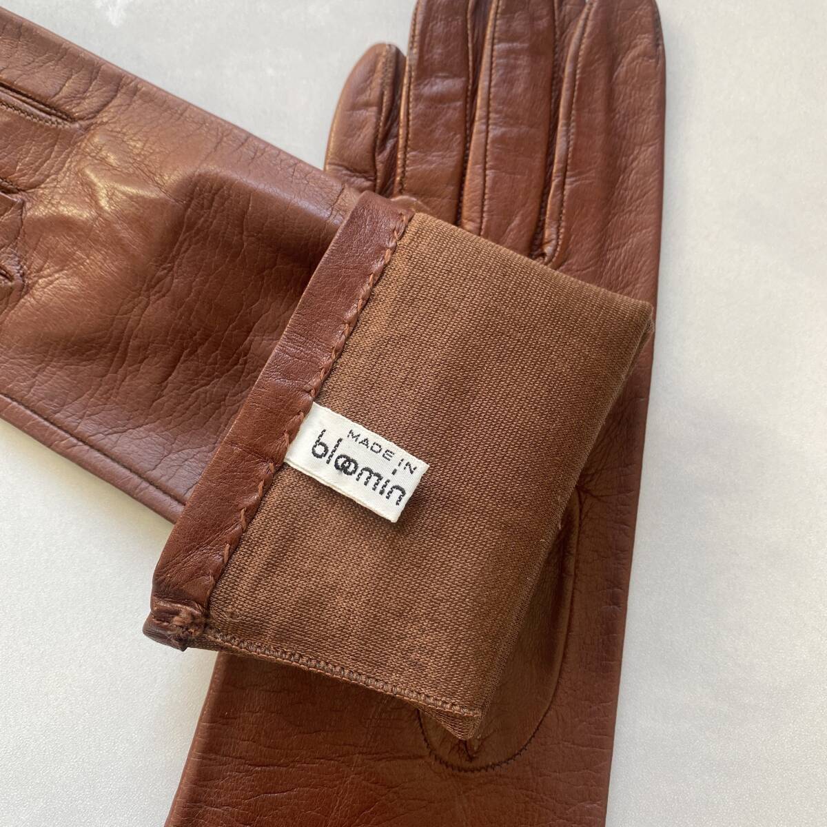 【美品】イタリア製 Blooming dale's レディース レザーグローブ 革手袋 ブラウン シルク裏地 サイズ6ハーフ