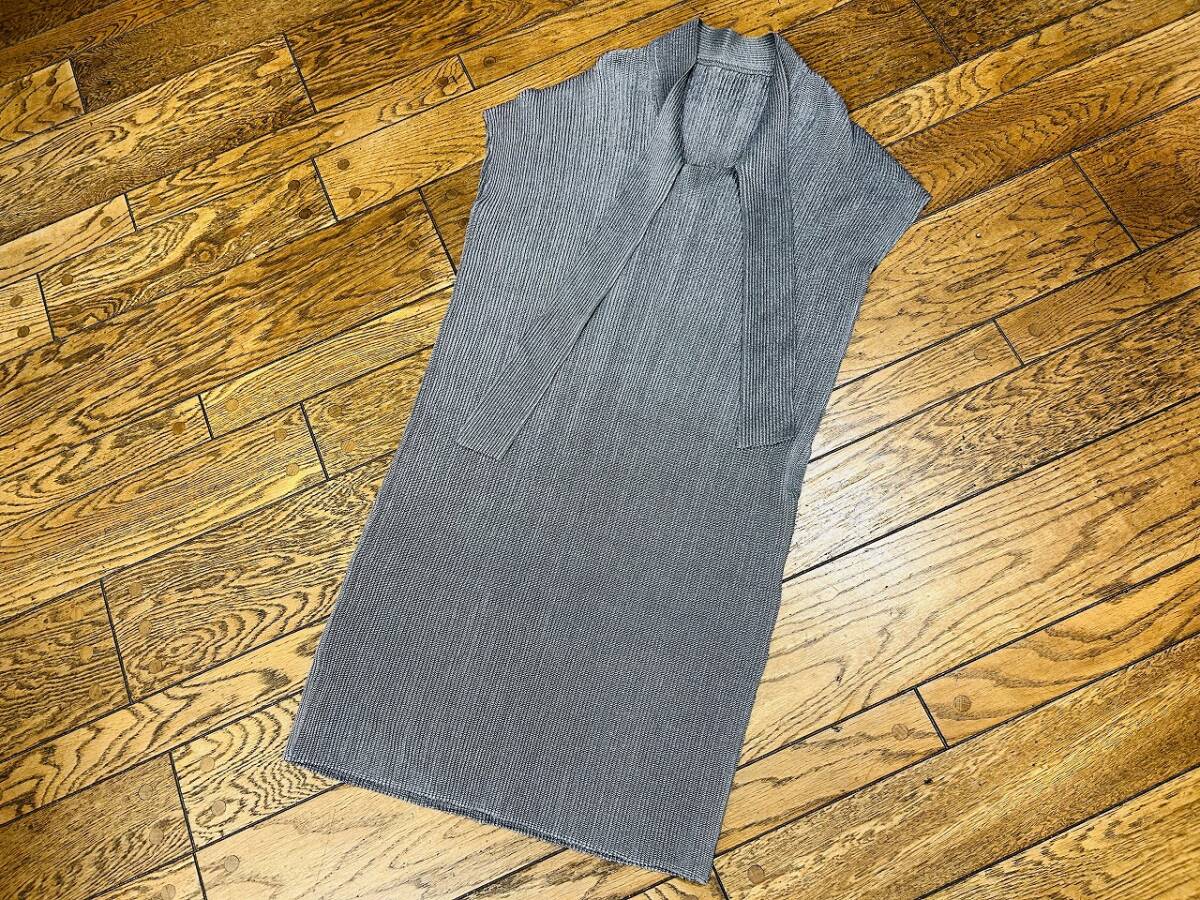 A3248 スペッチオ SPECCHIO◆半袖 シャトルプリーツ ワンピース レディー40 シルバーグレー
