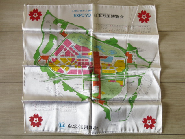 【希少】EXPO’70 日本万博博覧会 ハンカチーフ 風呂敷 大阪万博 昭和レトロ カレンダー 弘容信用組合