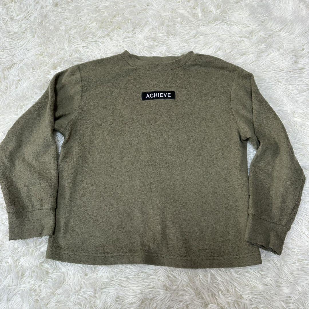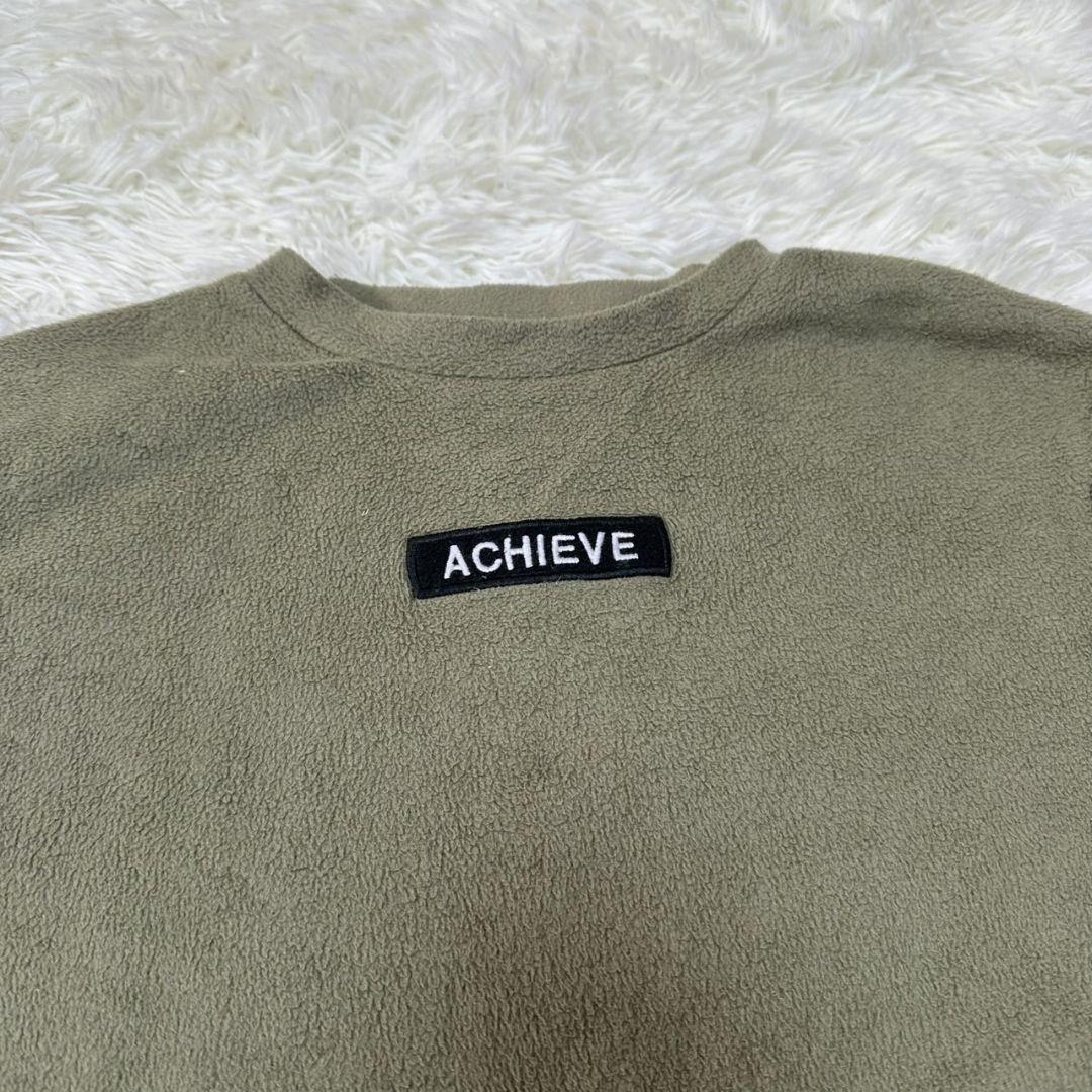 シンプルでスタイリッシュなオリーブグリーンの長袖カットソー。胸元には「ACHIEVE」の刺繍が施されており、カジュアルな印象を与えます。