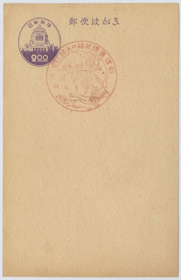 記念印☆働く婦人の福祉増進運動☆東京・S24.8.1