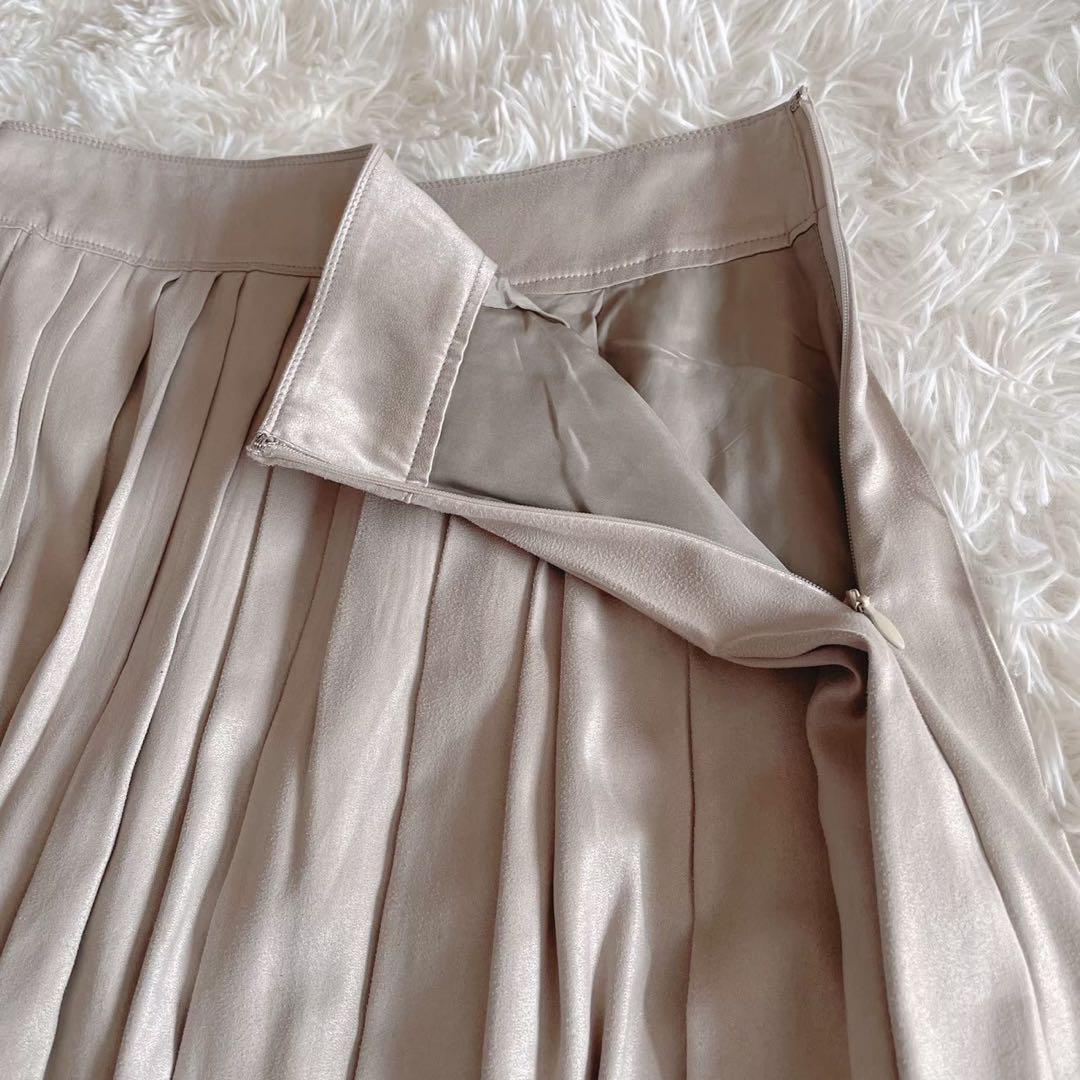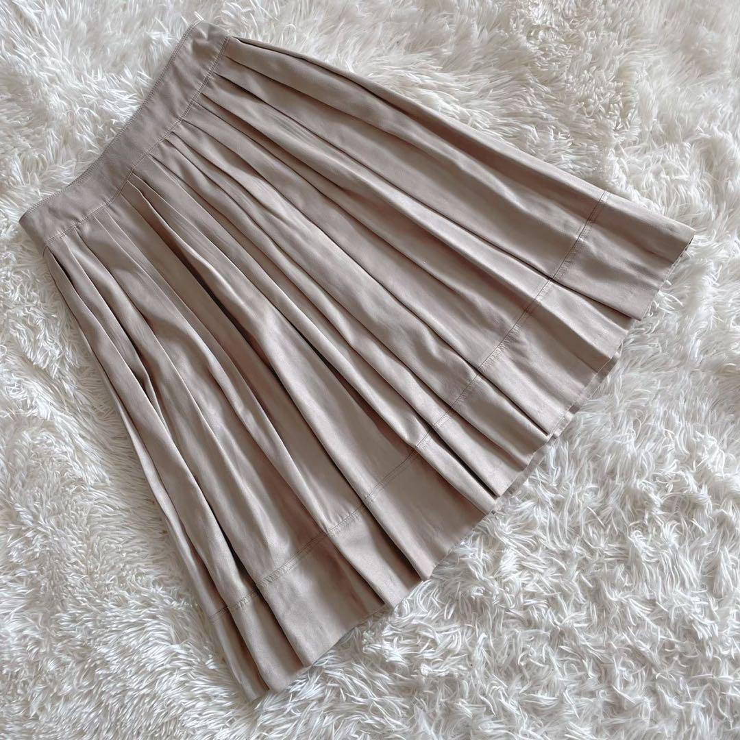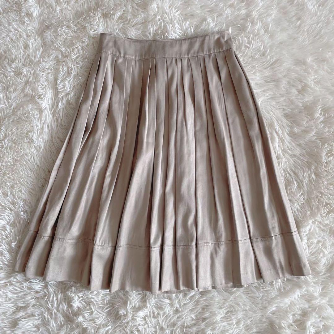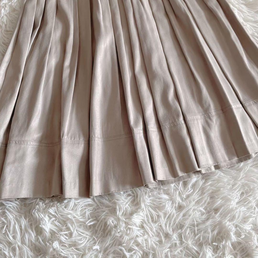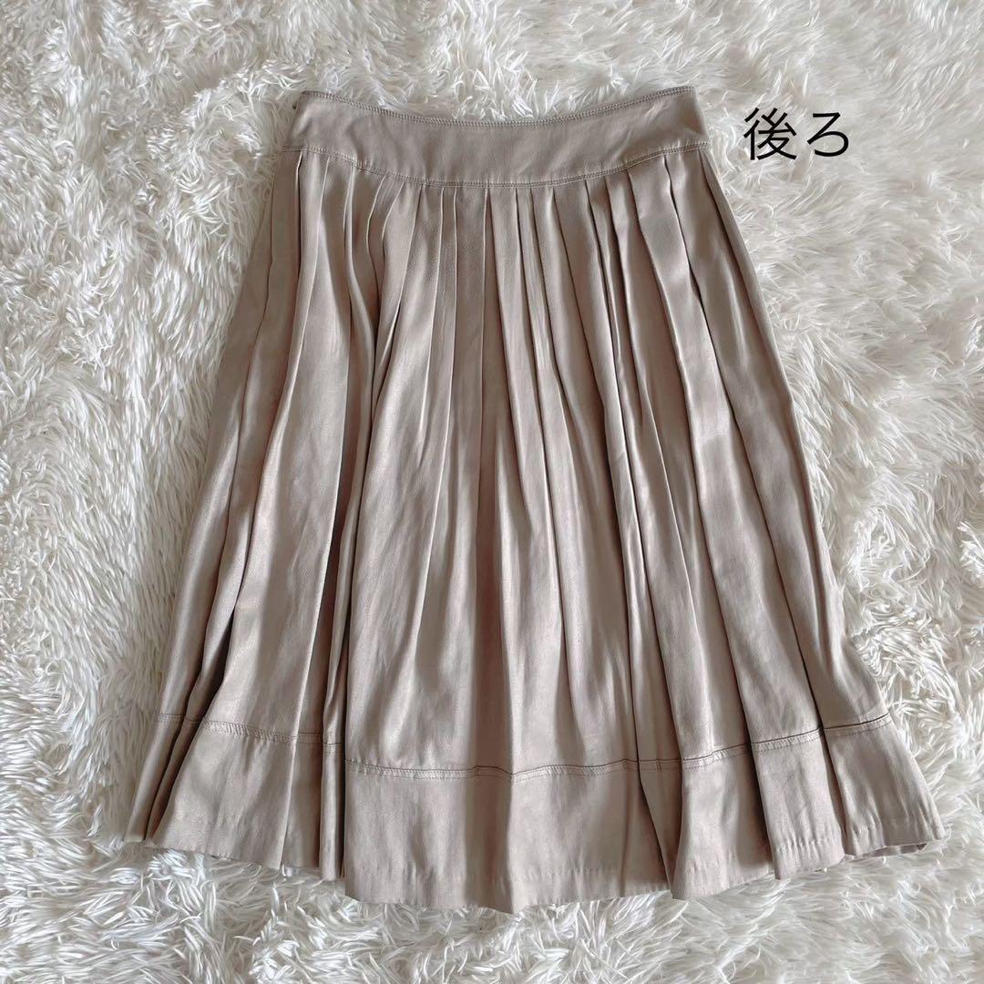 日本製 『ボールジィ』 (36) 膝丈プリーツスカート サイドファスナー 光沢