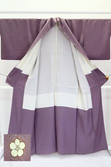 | 【送料無料】色無地 くすんだ赤紫 縮緬地 一つ紋 身丈158cm 袷 正絹 仕立て上がり お洒落 フォーマル m-7073 |