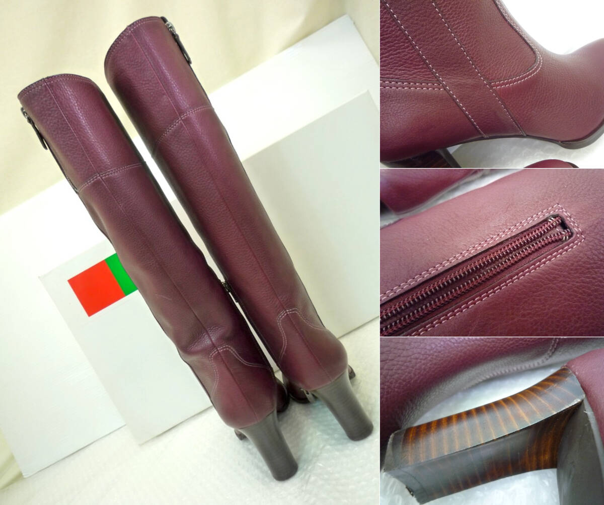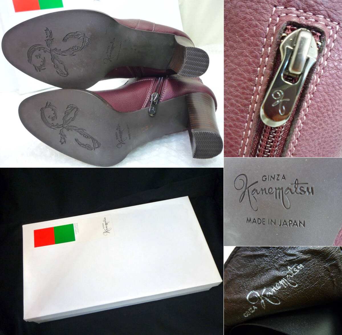 新品未使用 銀座かねまつ ロングブーツ レザー 24cm ボルドー色 箱入 Ginza Kanematsu 美シルエット オシャレ ギンザ カネマツ お得 必見