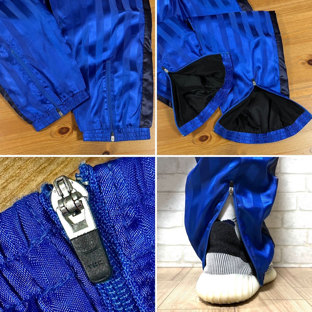 ☆ストライプ入りの光沢ブルーカラーが目を惹く一本。更に裏地には別布の微起毛素材を使用した保温性のある暖かな穿き心地◎また、サイドラインや刺繍ロゴを配置したこだわりの詰まった日本製のボトムスです。