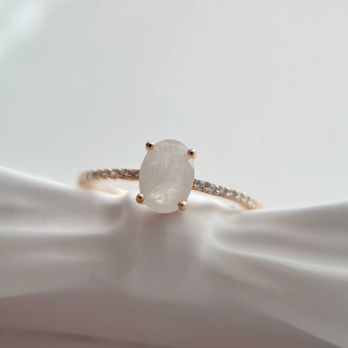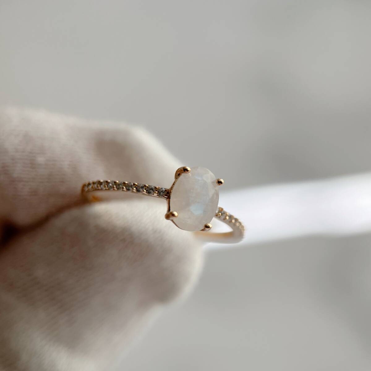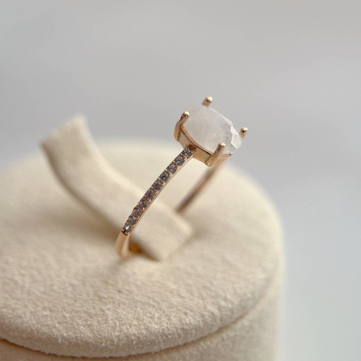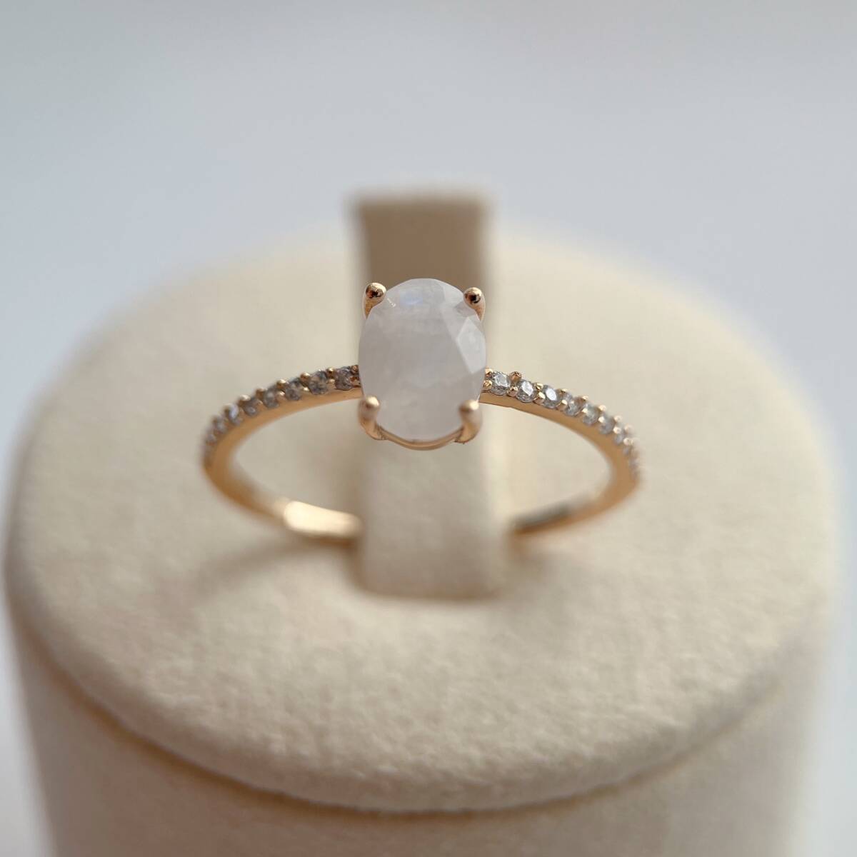 一粒のムーンストーンがセットされた、シンプルなリングです。