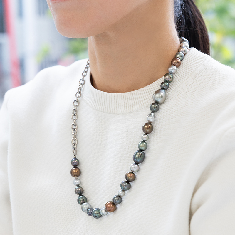 黒蝶パールのカラーバリエーションが魅力のネックレスです。