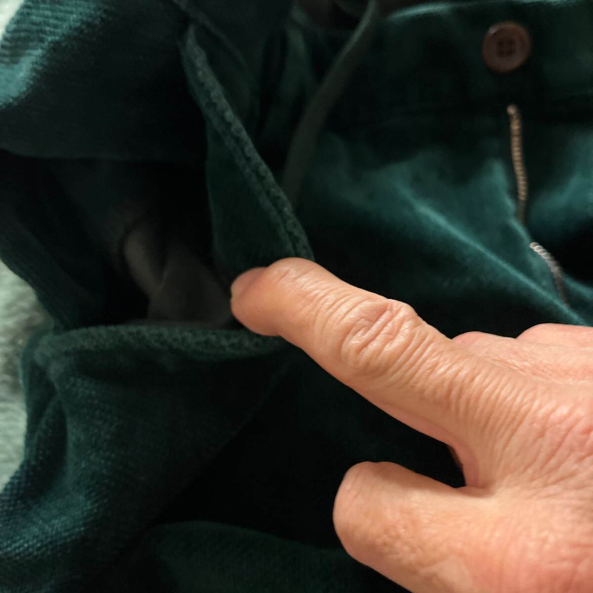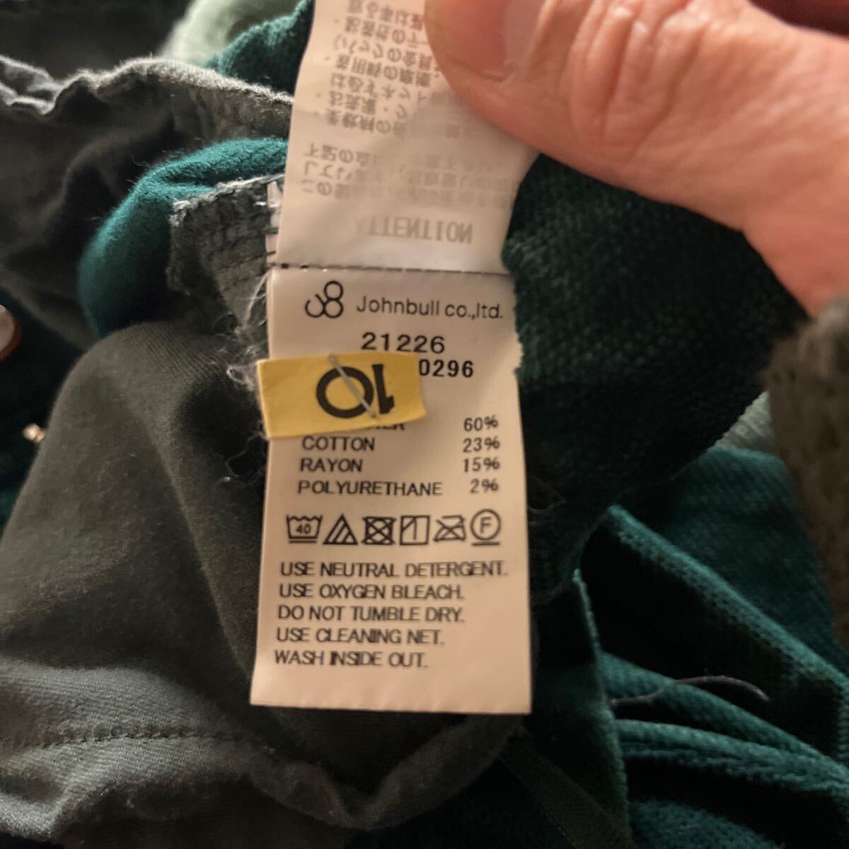 ジョンブル・コットーネ23%・ハッピーグリーン・コーディロイパンツ ウエスト88CM 裾幅17CM 使用頻度浅いお品 ポリエステル60% きれい
