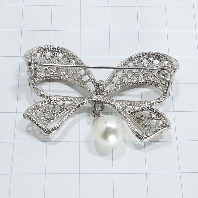 送料無料)ビンテージ☆パール リボンモチーフ☆アンティーク ブローチ A27576