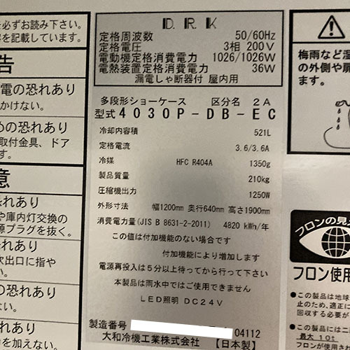 【業界最長1年保証】冷蔵多段オープンショーケース 大和冷機 403OP-DB-EC 業務用 中古/送料無料