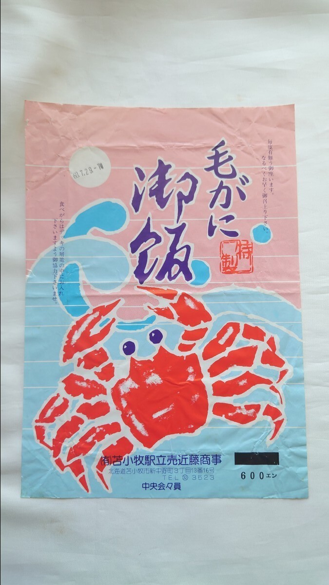■苫小牧駅立売近藤商事・苫小牧駅■毛がに 御飯弁当■駅弁掛け紙