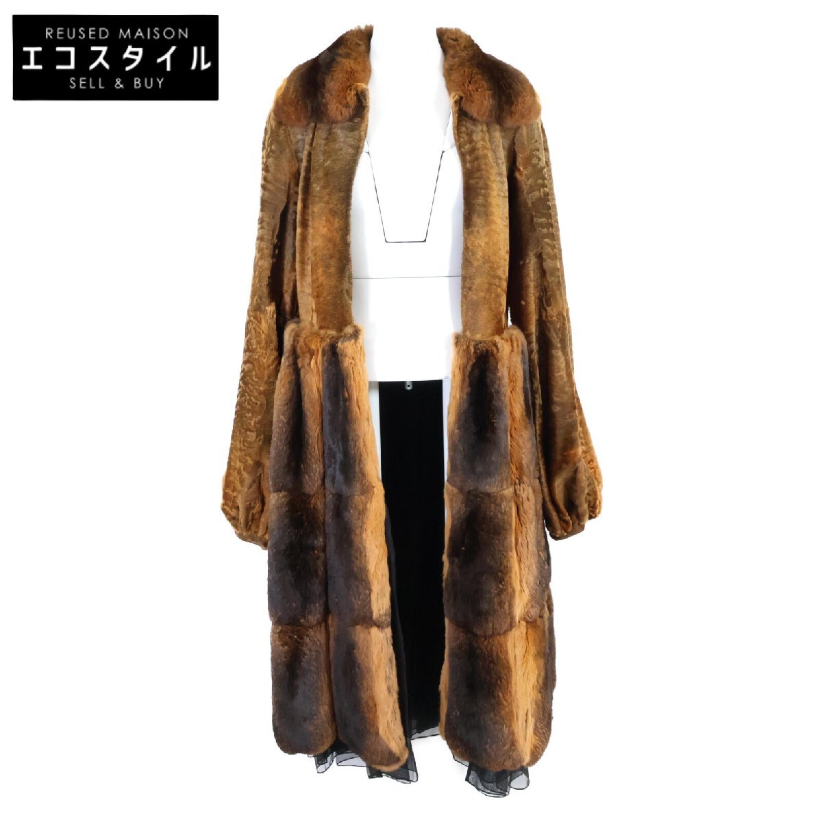 FOXEY BOUTIQUE フォクシーブティック リアルファーxカルガンラム ロング コート ブラウン レディース
