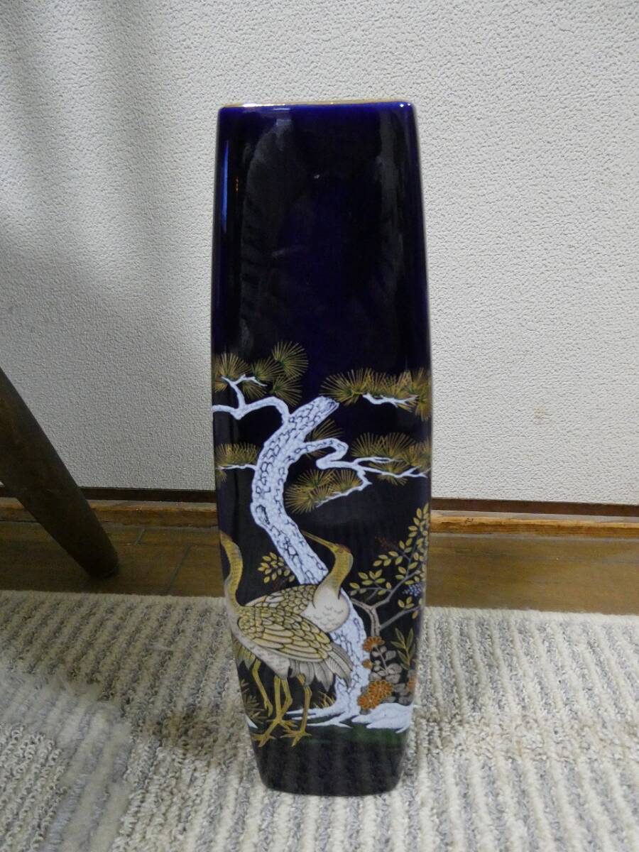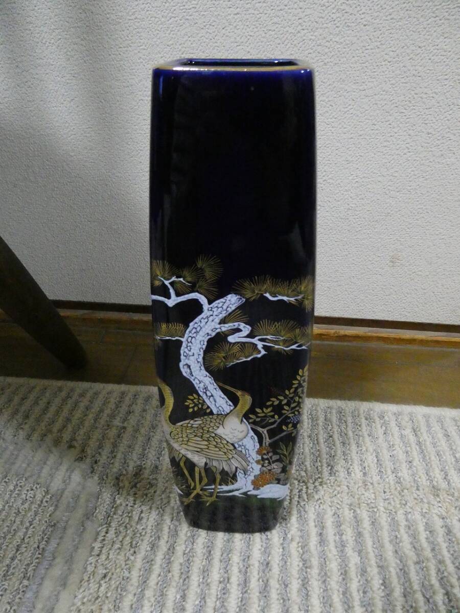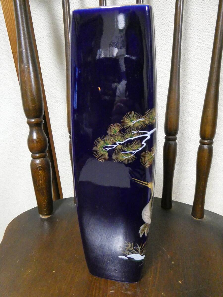 花瓶★明陶★鶴 松 花 濃紺★箱入