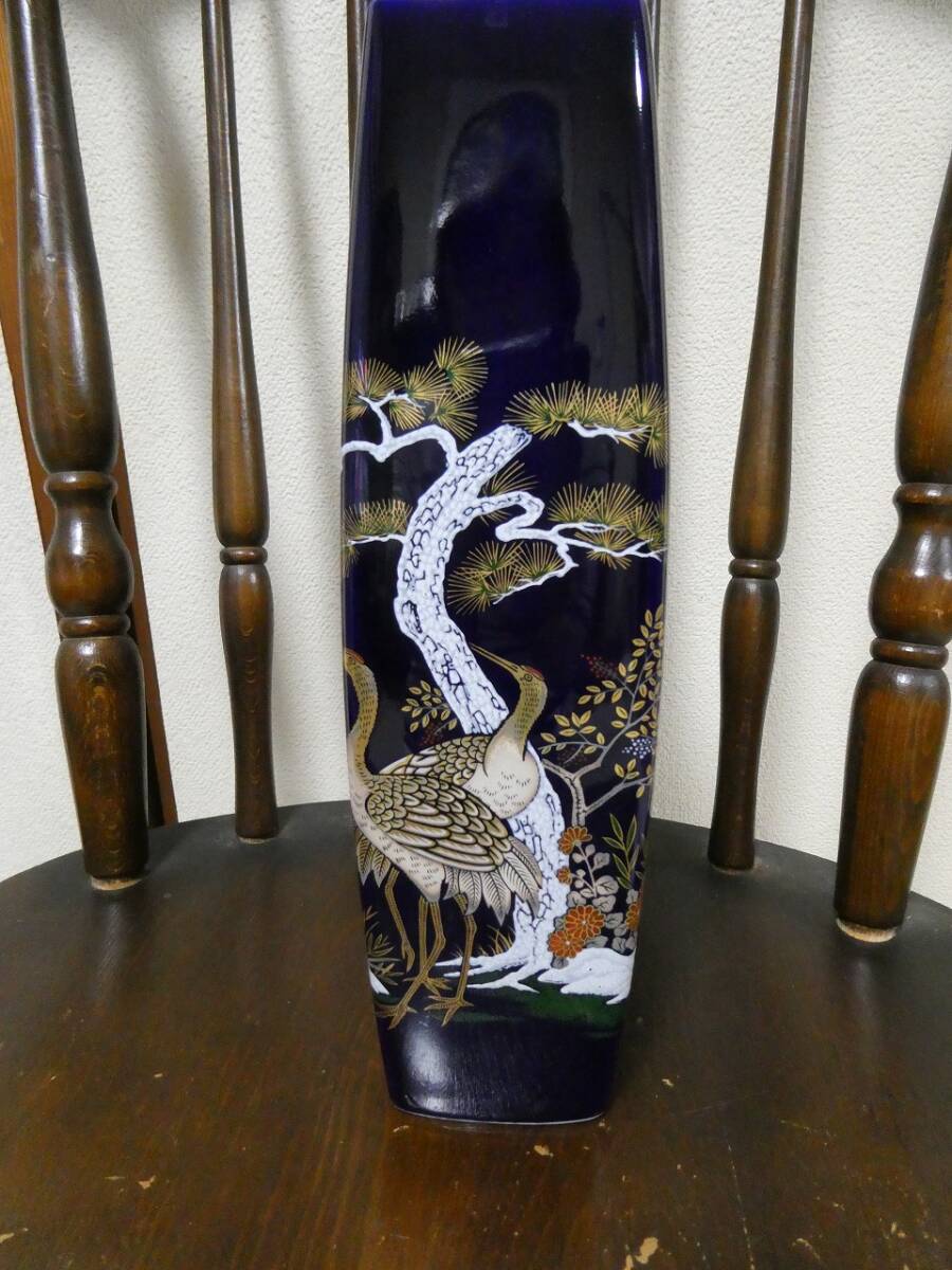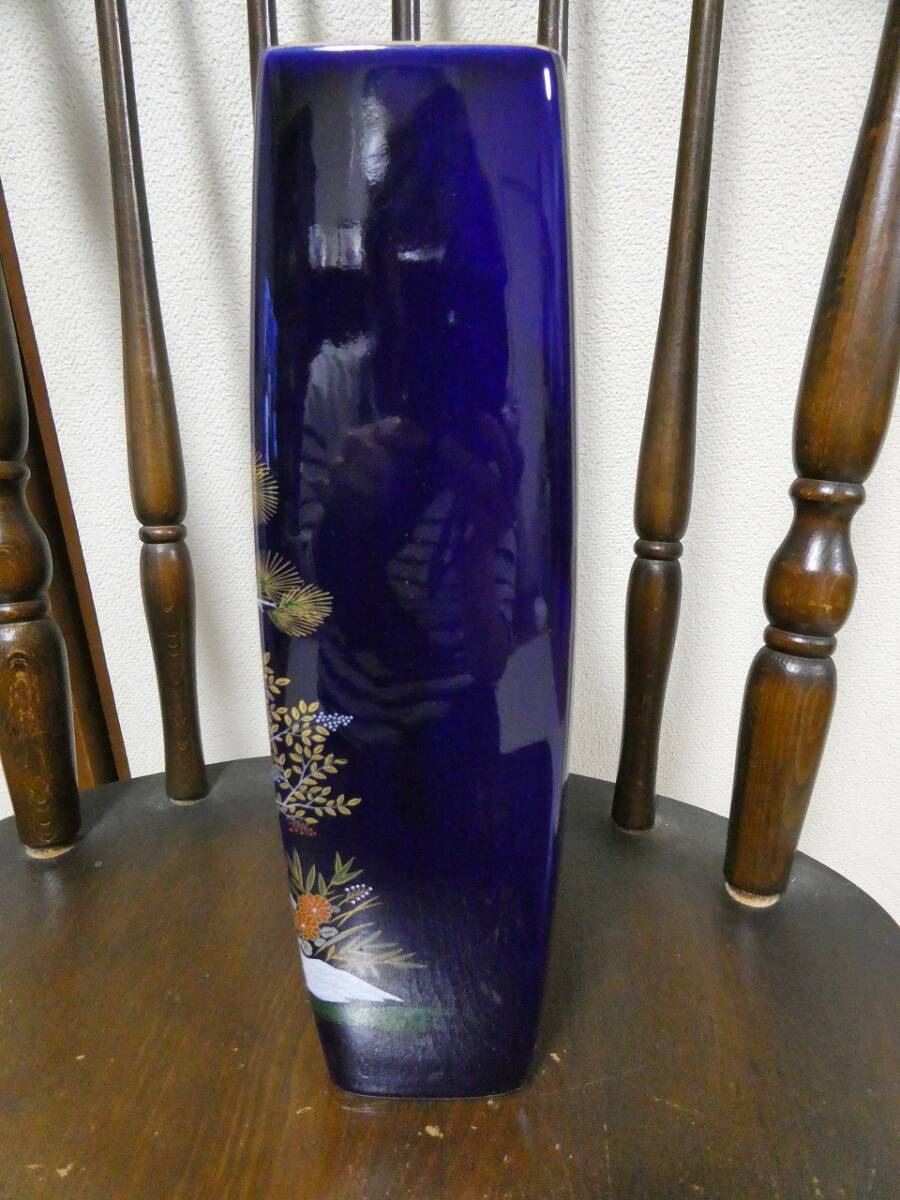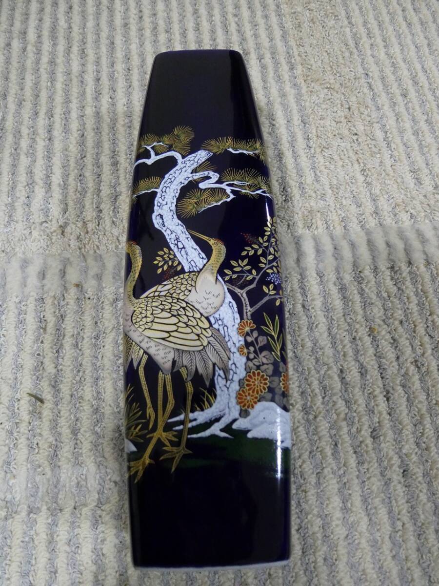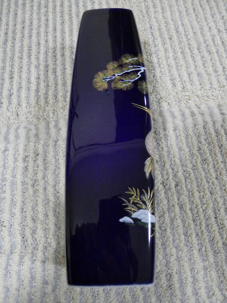 花瓶★明陶★鶴 松 花 濃紺★箱入