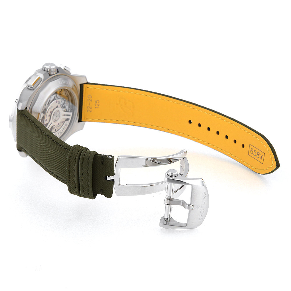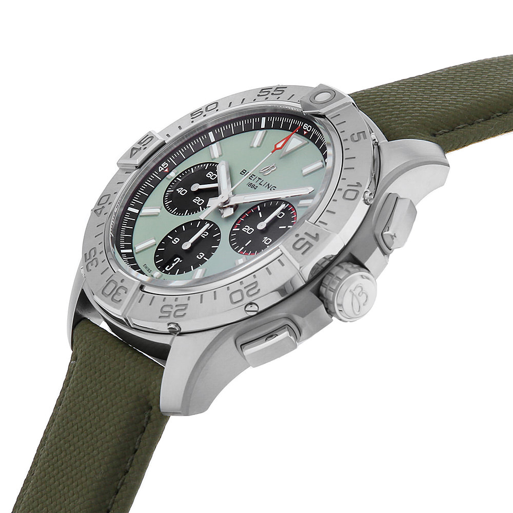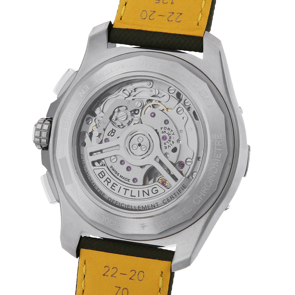 モデル情報 | ジェット機のパイロット向けに製作されたアベンジャーモデルは、極めて過酷なコックピット環境に耐え、さらなるチャレンジのために舞い戻ることができるよう設計されています。300メーター防水性能。スリップ防止パターンが施されたリューズはグローブを装着したままでも操作し易い設計となっているモデルです。 |