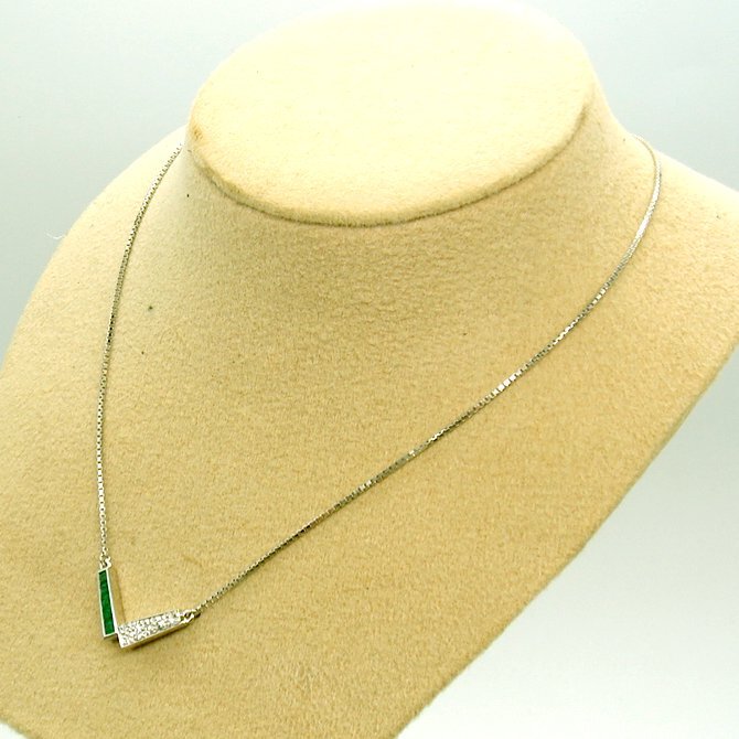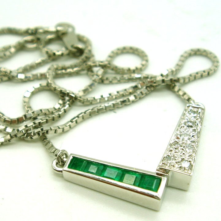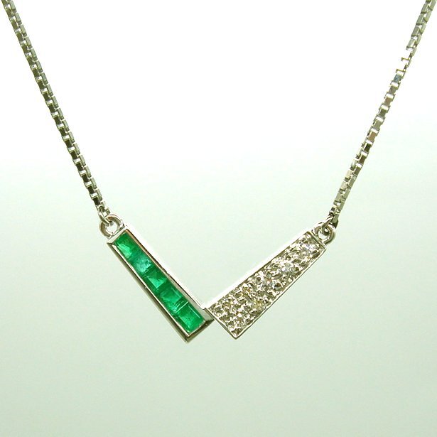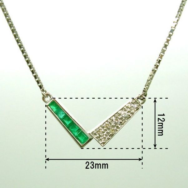 PN567:Pt エメラルド ダイヤ プチネックレス