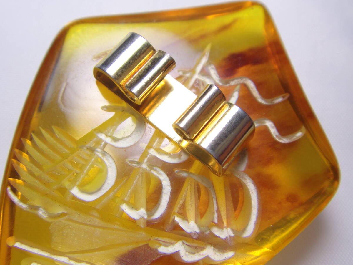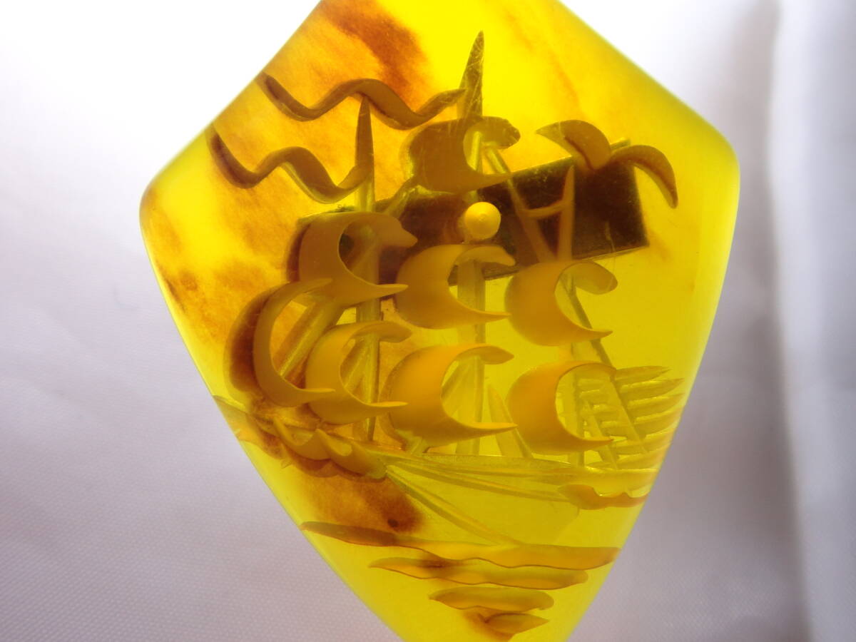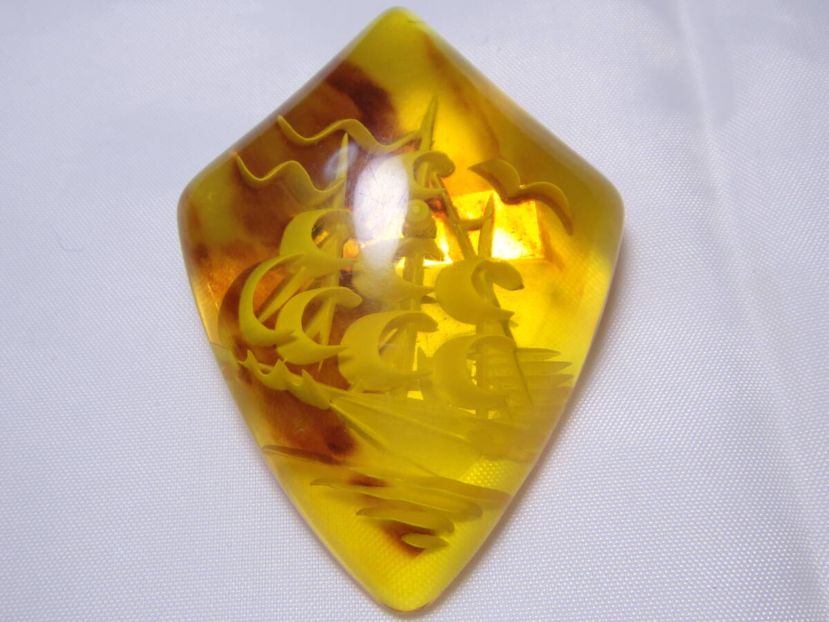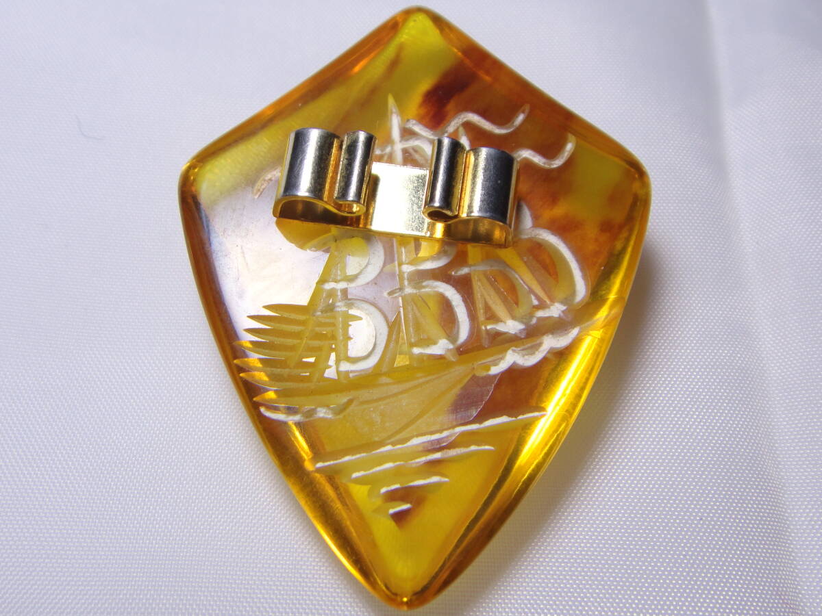 べっ甲 鼈甲張り べっ甲張り ループタイ 大粒! 船デザイン 良品 ヴィンテージ アンティーク アクセサリー用部品などにも B822